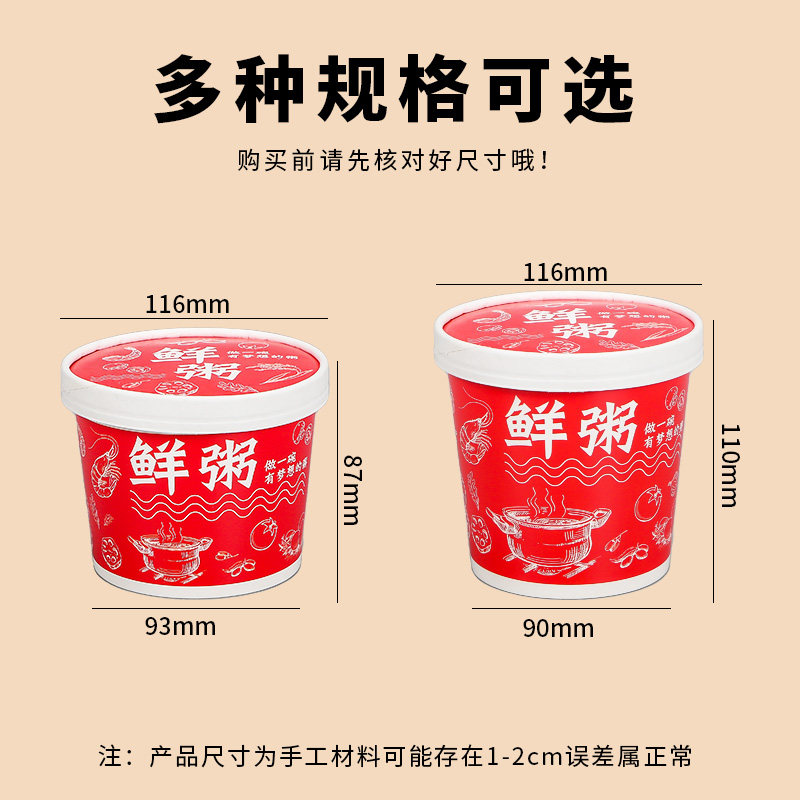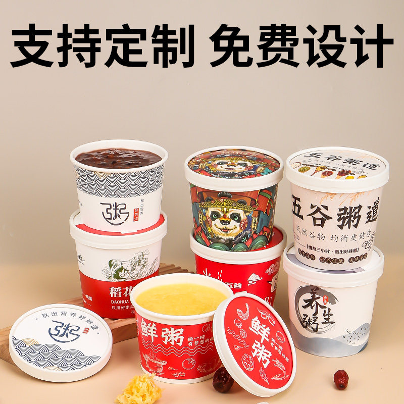 一次性餐盒牛皮纸粥桶打包盒商用外卖早餐粥稀饭粥盒粥碗粥杯定制