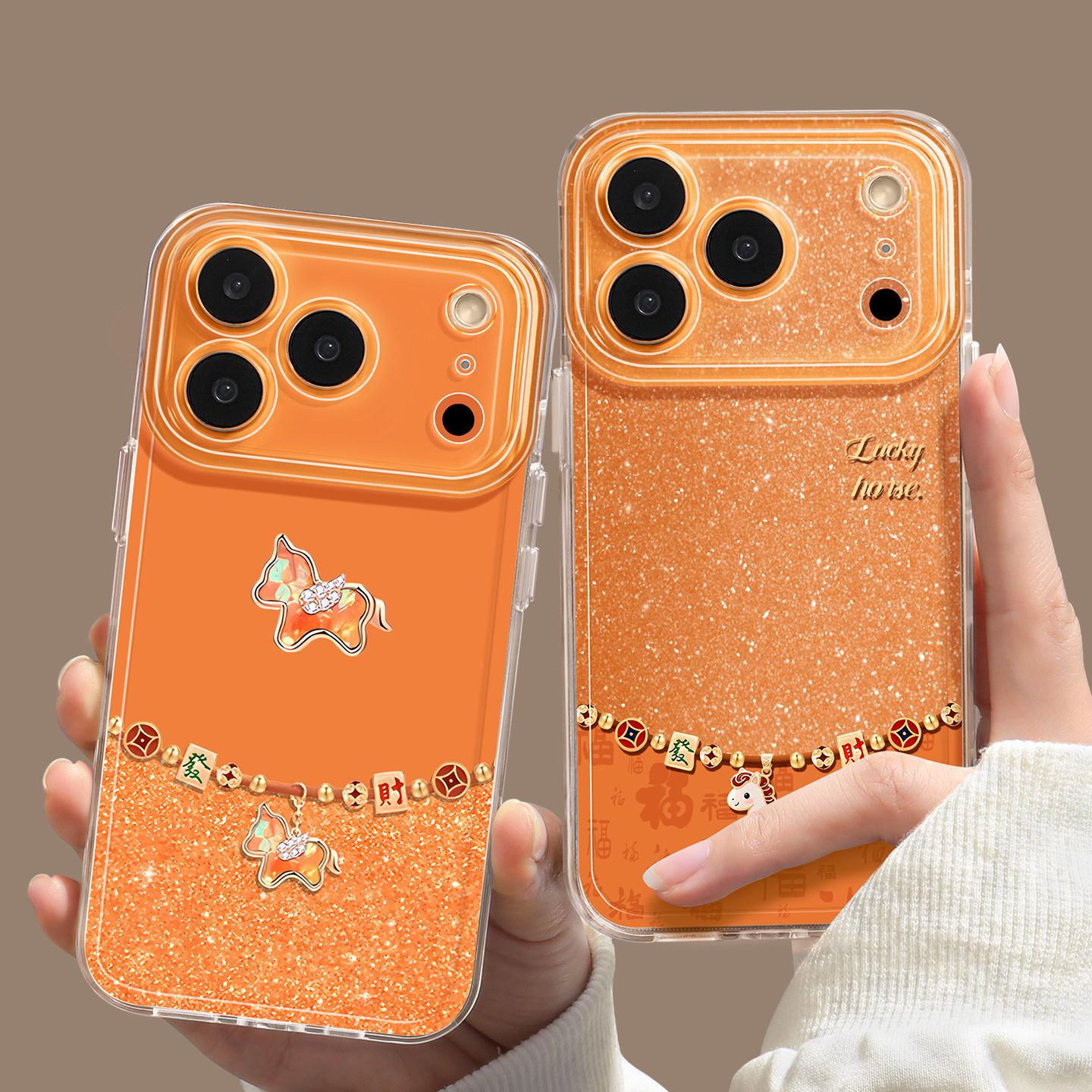 优思顿适用iphone17pro手机壳新款苹果17promax透明16水晶小马pro超好看max带挂绳14防摔15软13橙色pm保护套