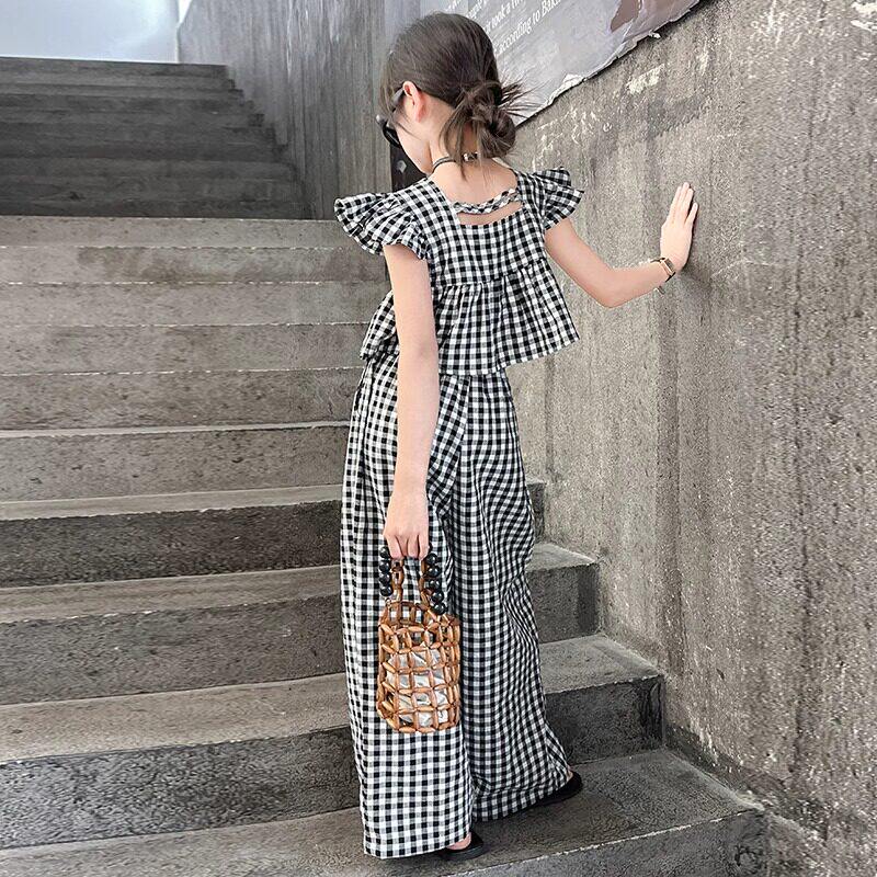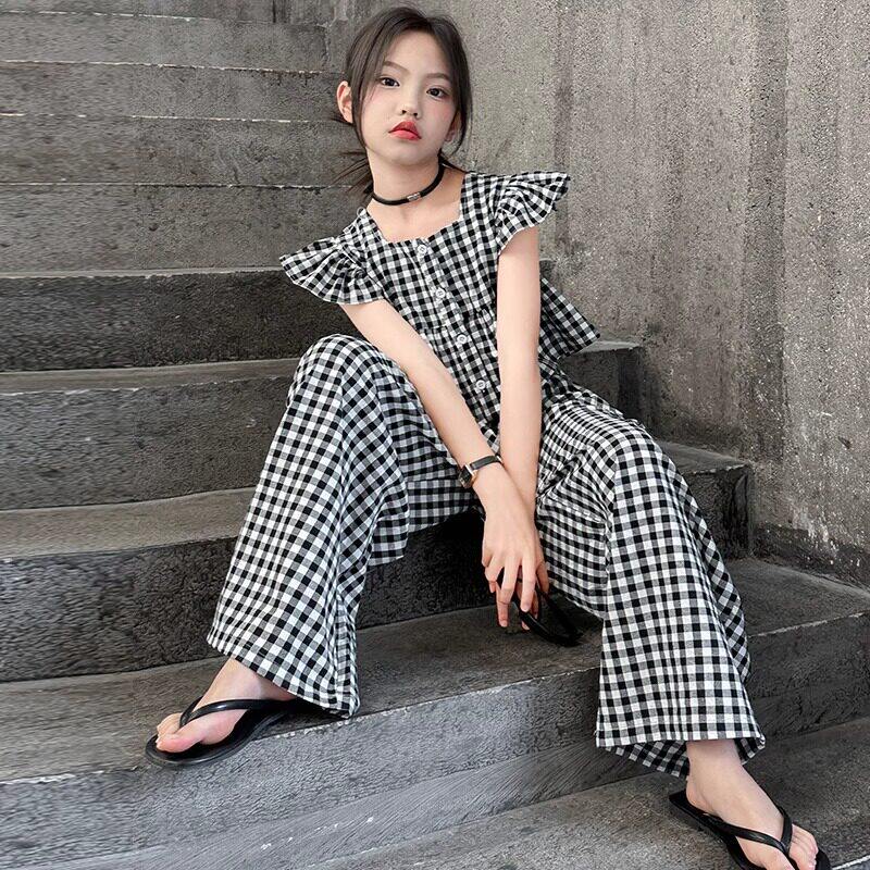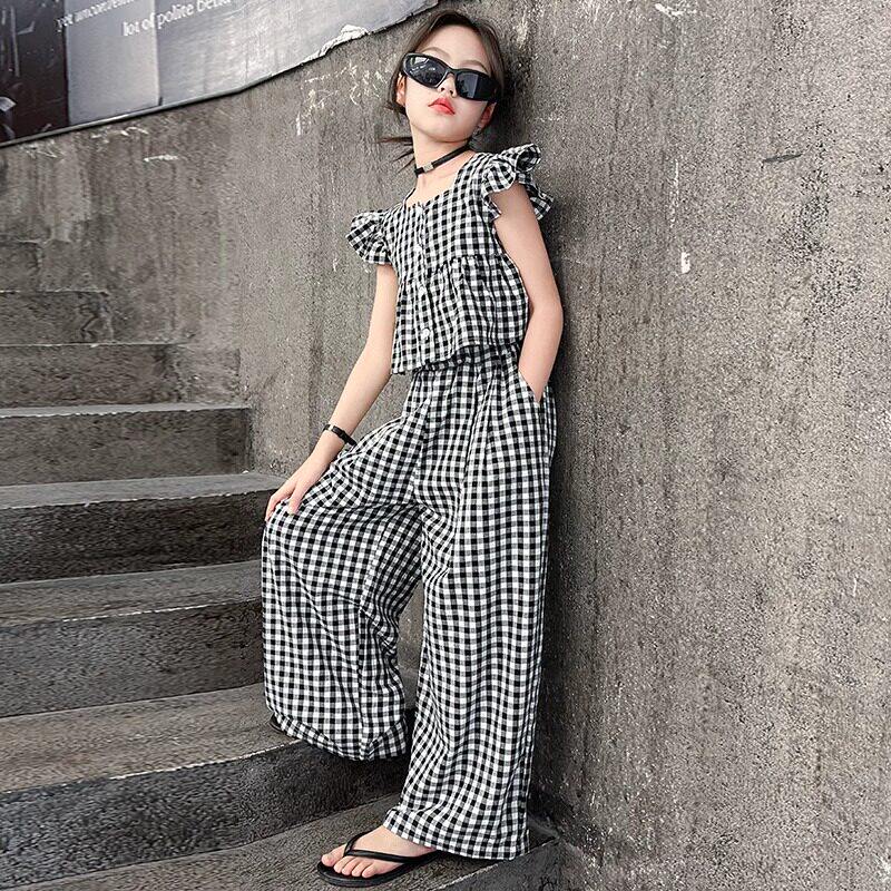 女童夏季网红格子套装2026新款儿童韩版薄款阔腿裤小女孩时髦夏装