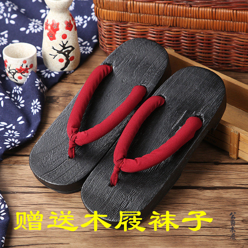 cos增高外穿蝴蝶忍鞋子人字拖中国拖鞋木头赠送袜男女情侣木屐鞋