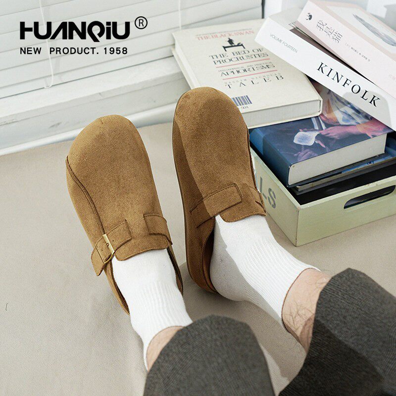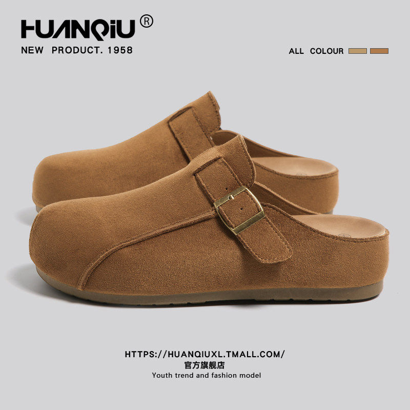 环球勃肯鞋男款半拖老钱风软底一脚蹬包头外穿厚底增高5cm半拖鞋