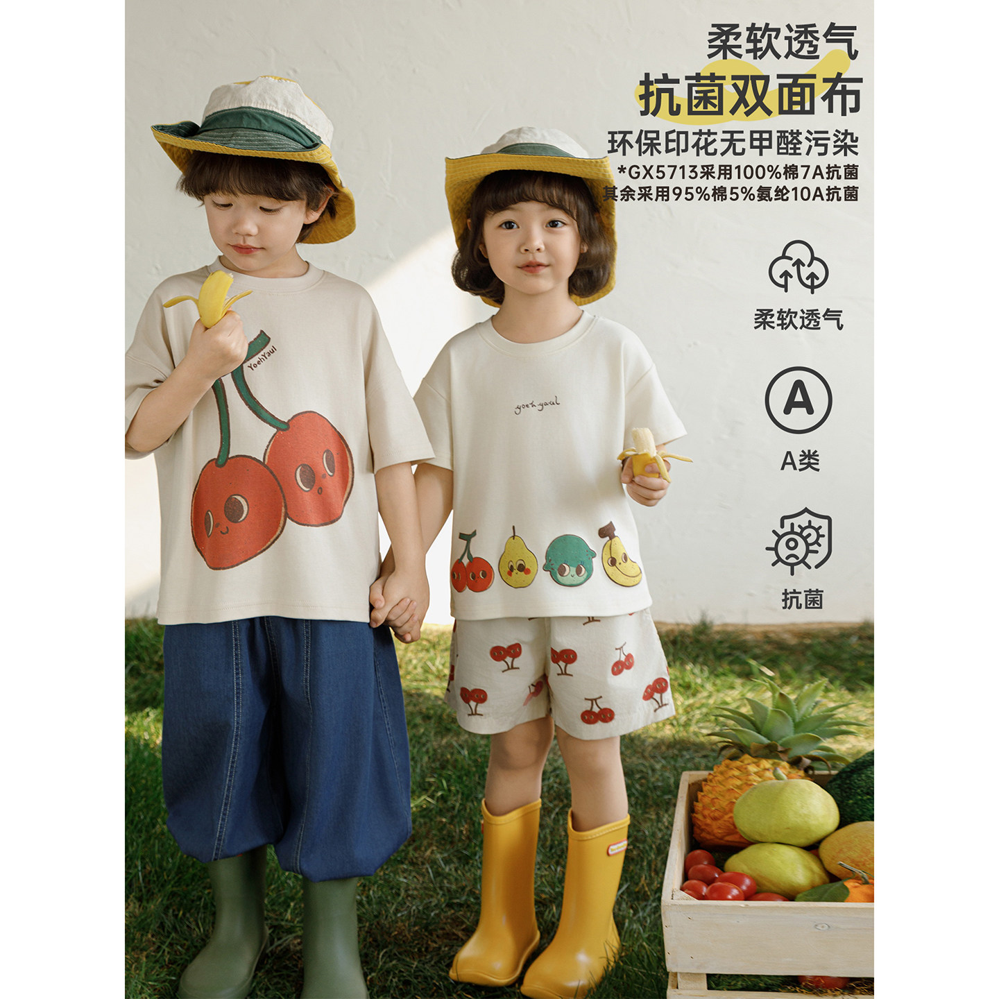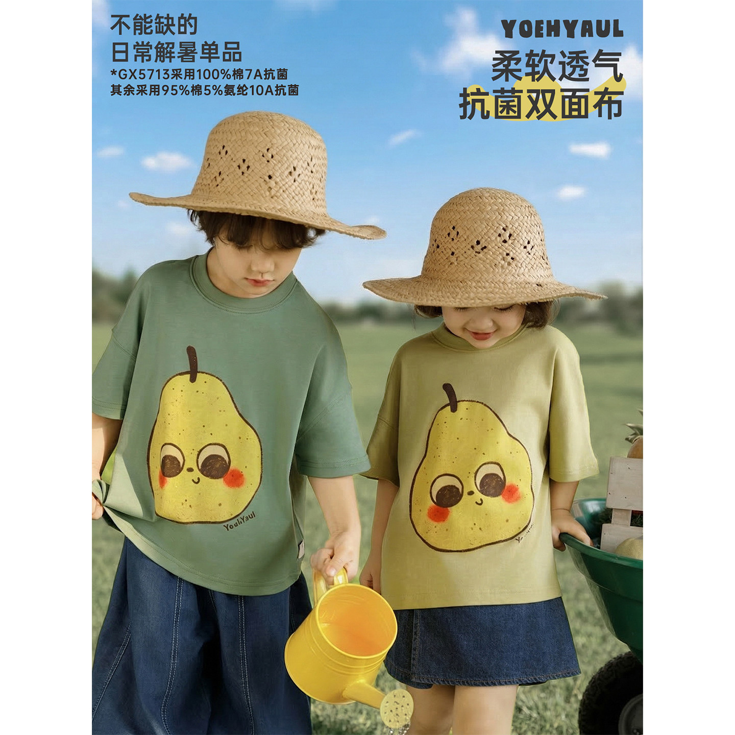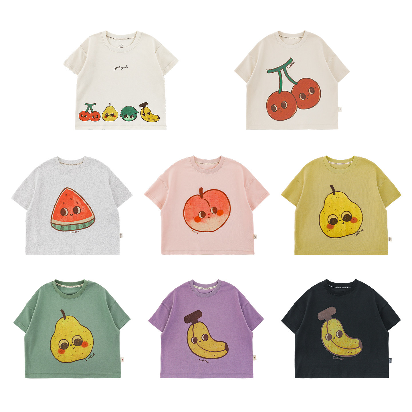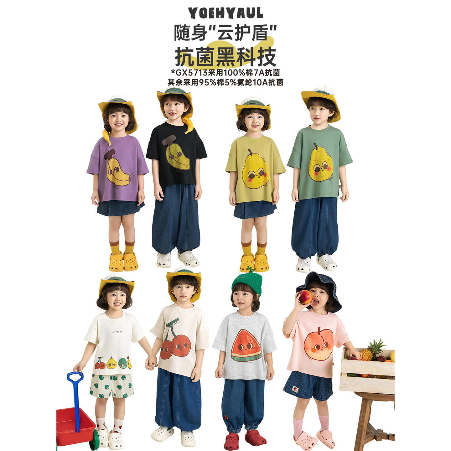 幼悠女童夏季新款多色卡通圆领水果短袖T恤宽松透气抗菌儿童上衣