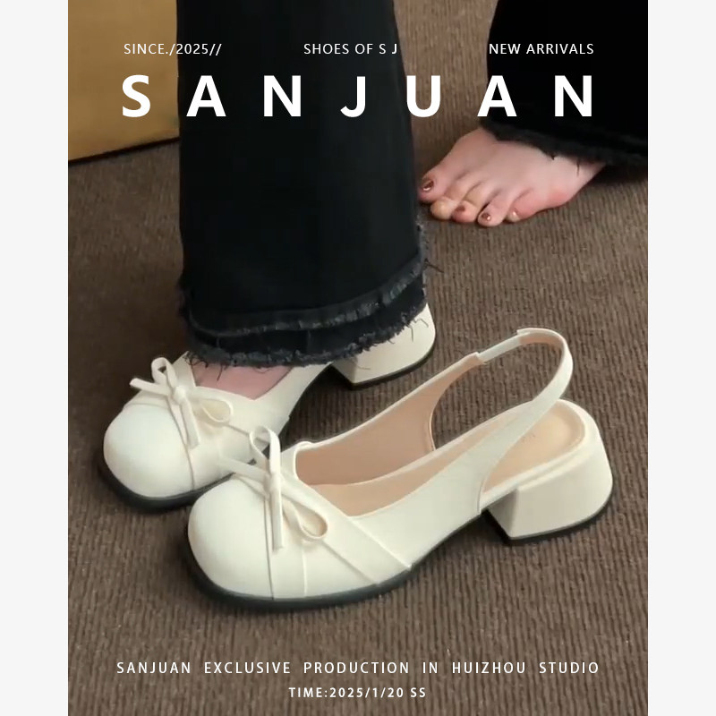 羊皮版sanjuan三卷法式包头凉鞋女半拖鞋外穿中跟气质粗跟单鞋春