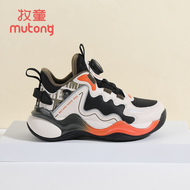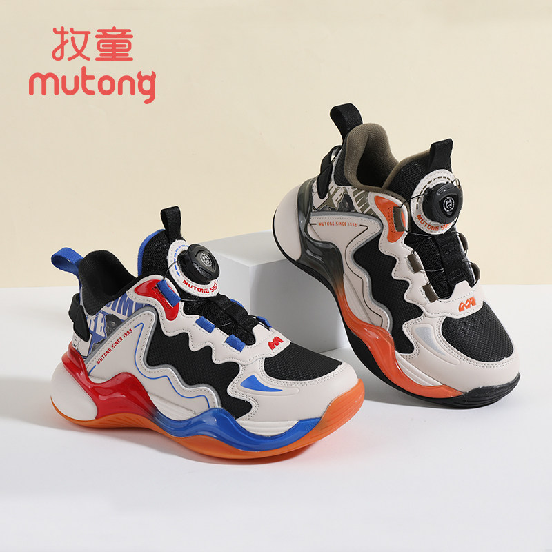 牧童童鞋儿童篮球鞋冬季新款加绒保暖休闲旋转纽扣男童运动鞋