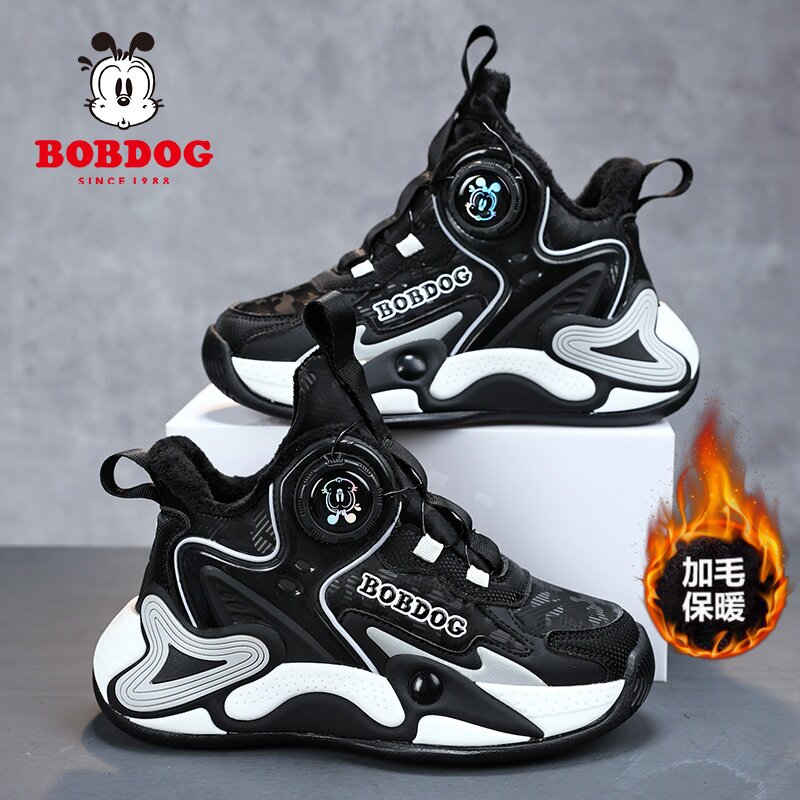 巴布豆冬季男童运动鞋儿童篮球鞋二棉加绒保暖防水中大童男孩鞋子