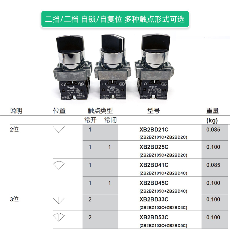 XB2-BD21C两档2位旋钮开关XB2-BD33C三档3位ZB2BE101常开ZB2BE102