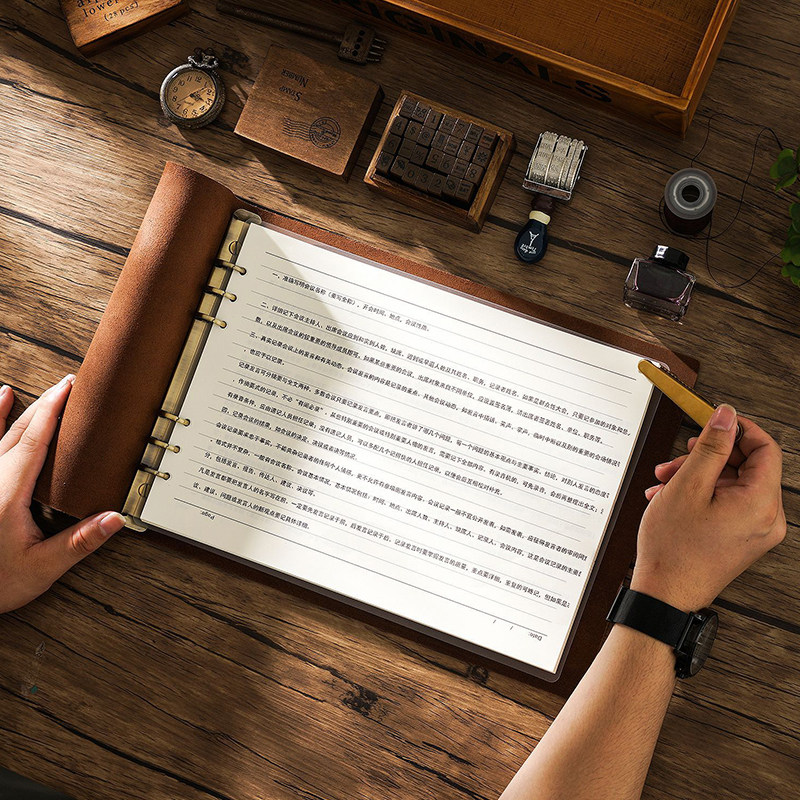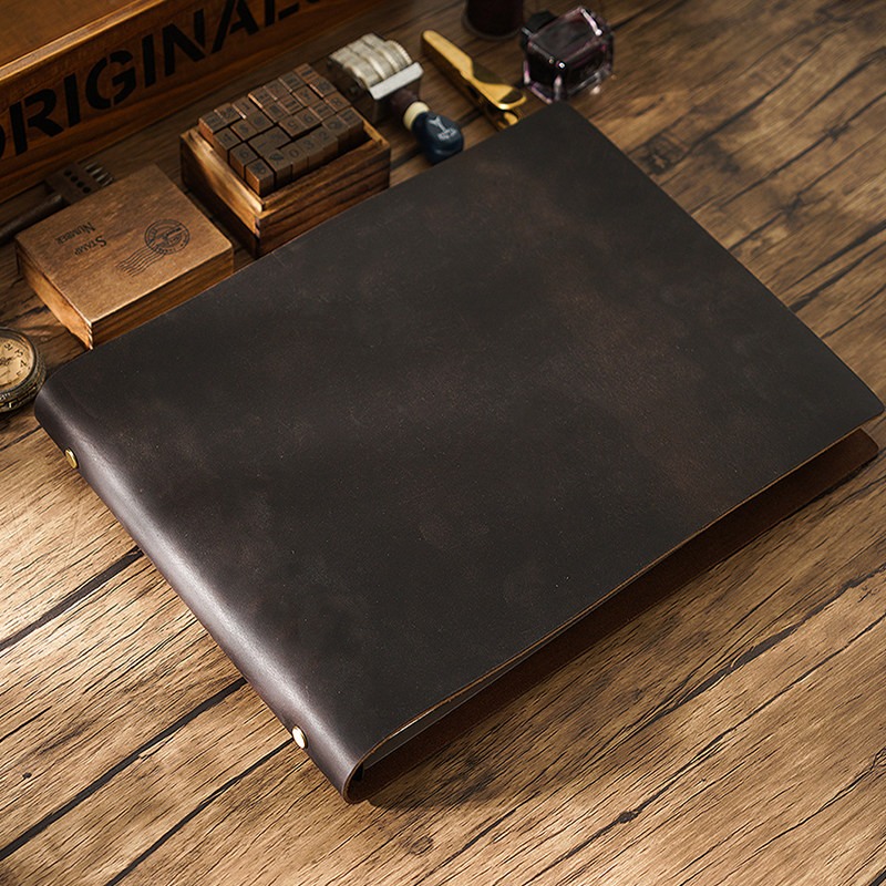 真皮活页A4本子牛皮本复古记事本笔记本绘画本手绘本素描本日记本