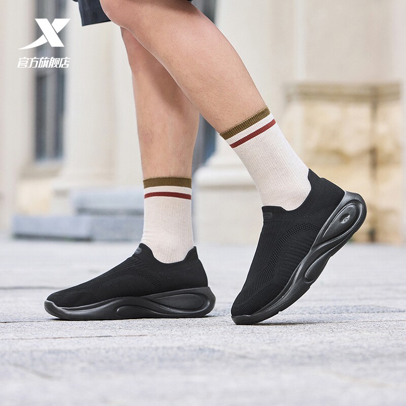 特步全黑公务鞋男鞋夏季网面厚底通勤运动老爹鞋黑色休闲鞋女跑鞋