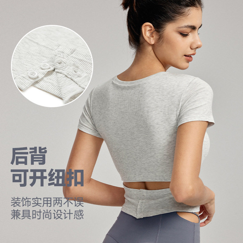 运动短袖女带胸垫不跑杯瑜伽服上衣高级感修身透气健身T恤
