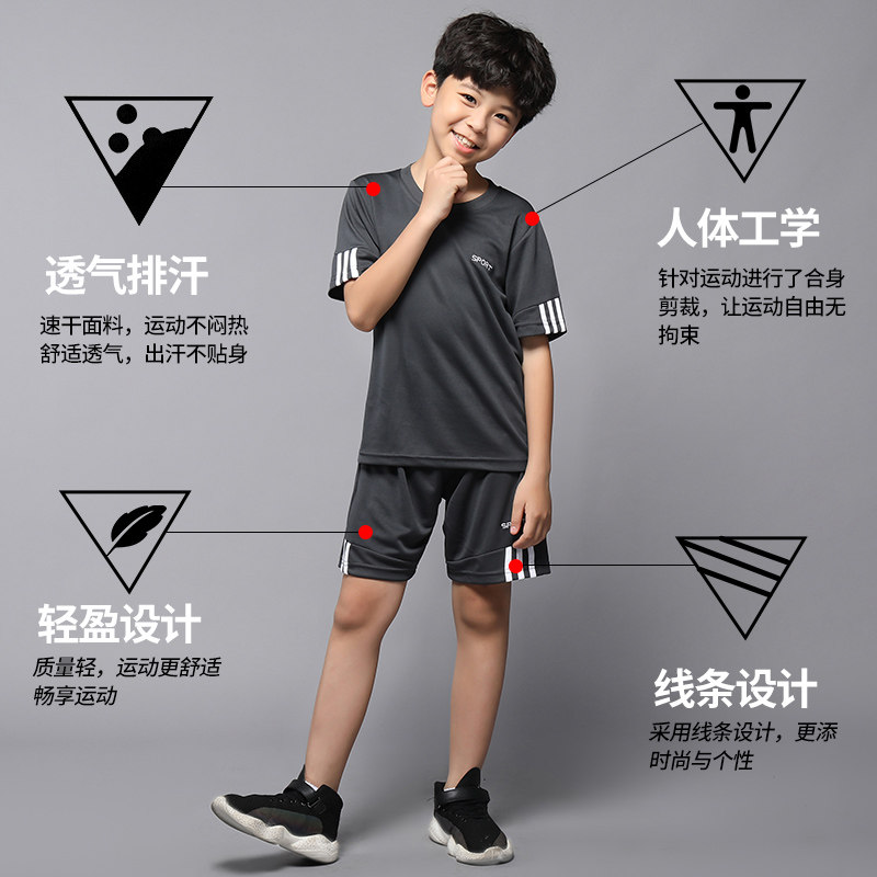 儿童运动套装男女童夏宽松短袖T恤篮球足球跑步健身速干衣训练服
