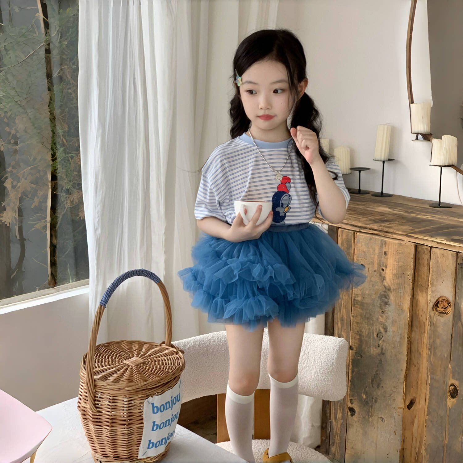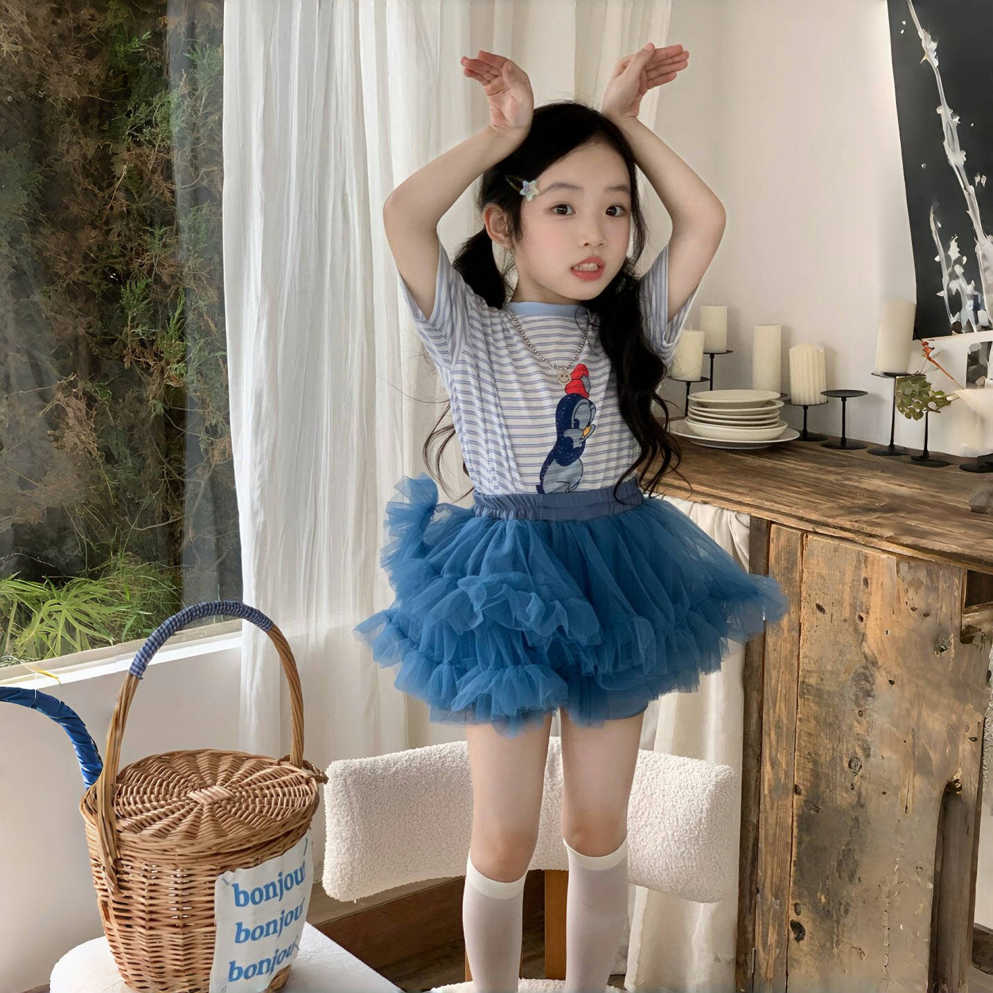 女童短袖纱裙套装2026夏季韩版儿童洋气时髦女宝夏装裙子两件套潮
