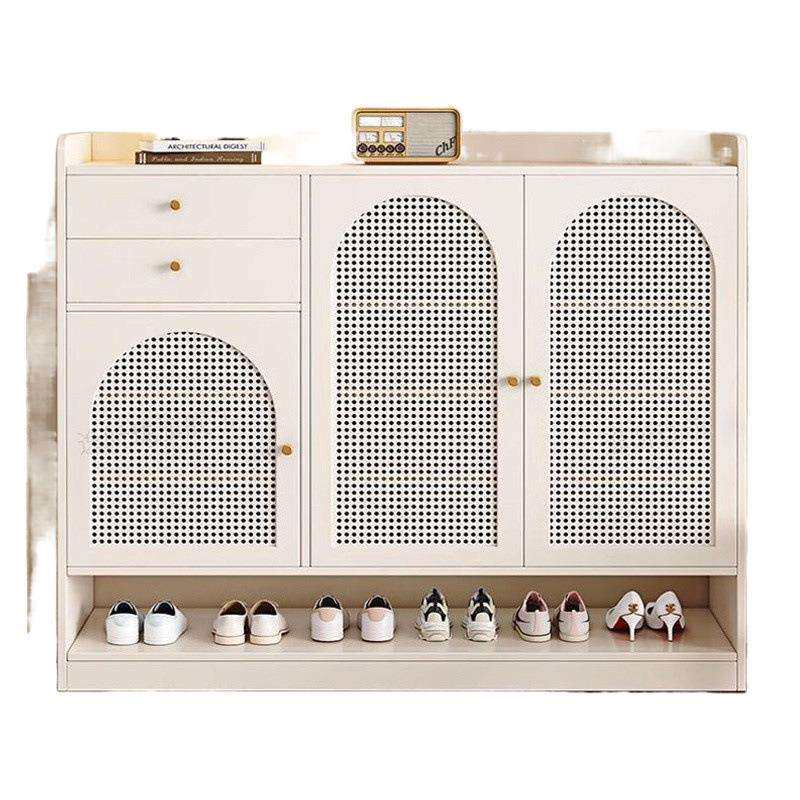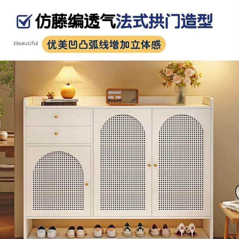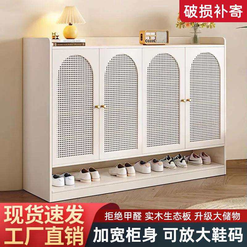 fLE实木鞋柜收纳柜靠墙门厅玄关进门家用超大鞋柜透气多层藤编鞋