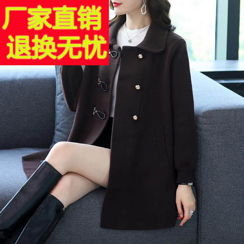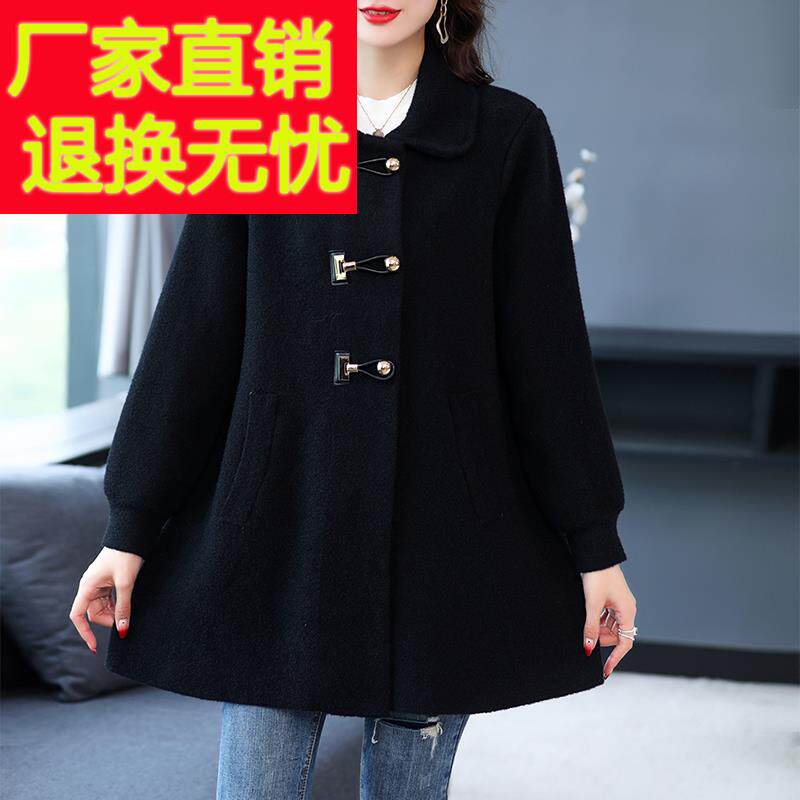 年轻妈妈秋冬毛呢外套胖女人加大码高档中长款双面羊绒大衣A字版