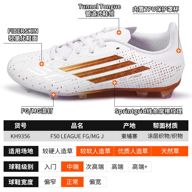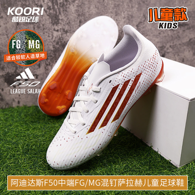 酷锐足球阿迪达斯萨拉赫F50中端FG/MG混钉儿童足球鞋男女KH9356