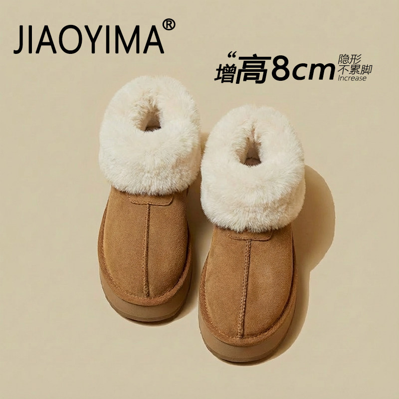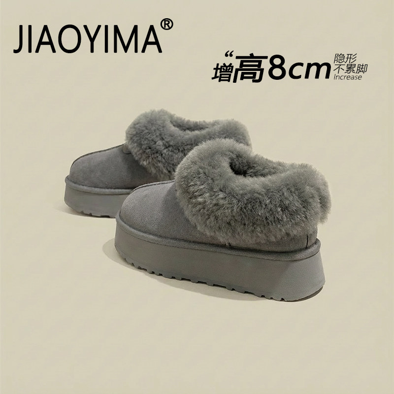 内增高灰色雪地靴女款2026冬季新款一脚蹬加绒加厚保暖棉鞋毛毛鞋