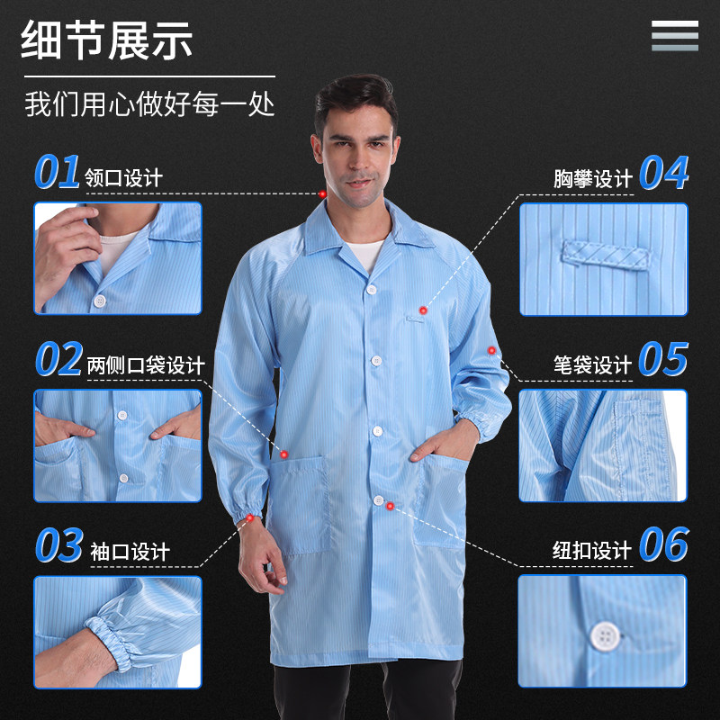 防尘工作服防护服防静电无尘上衣食品电子厂男女通用翻领纽扣大褂