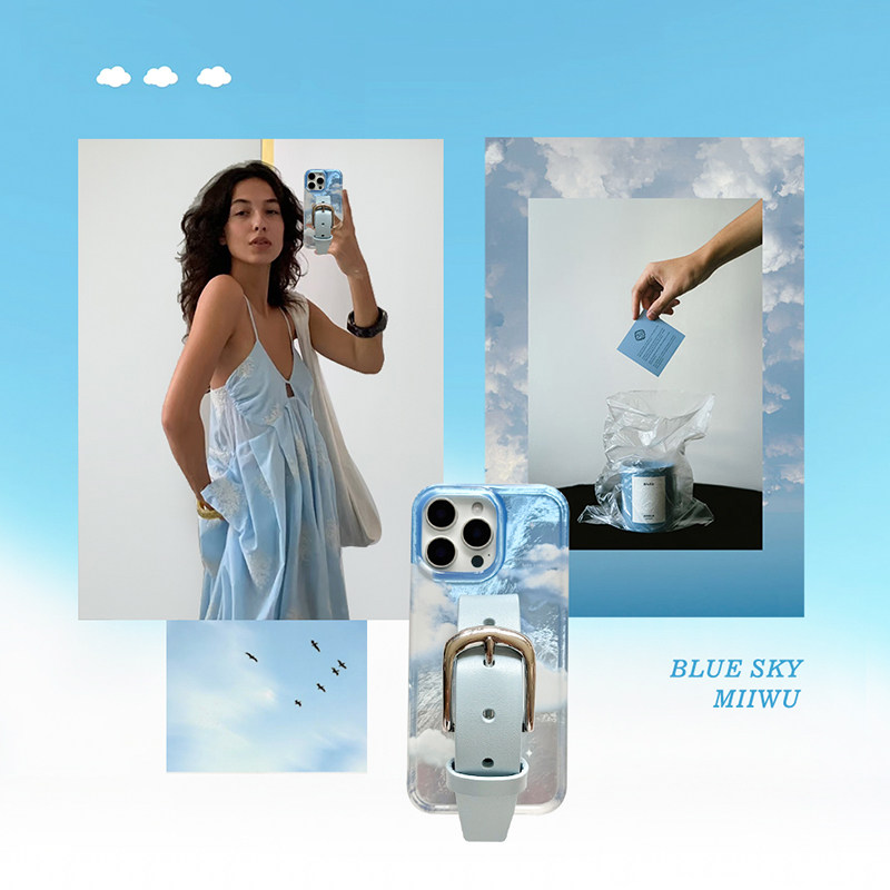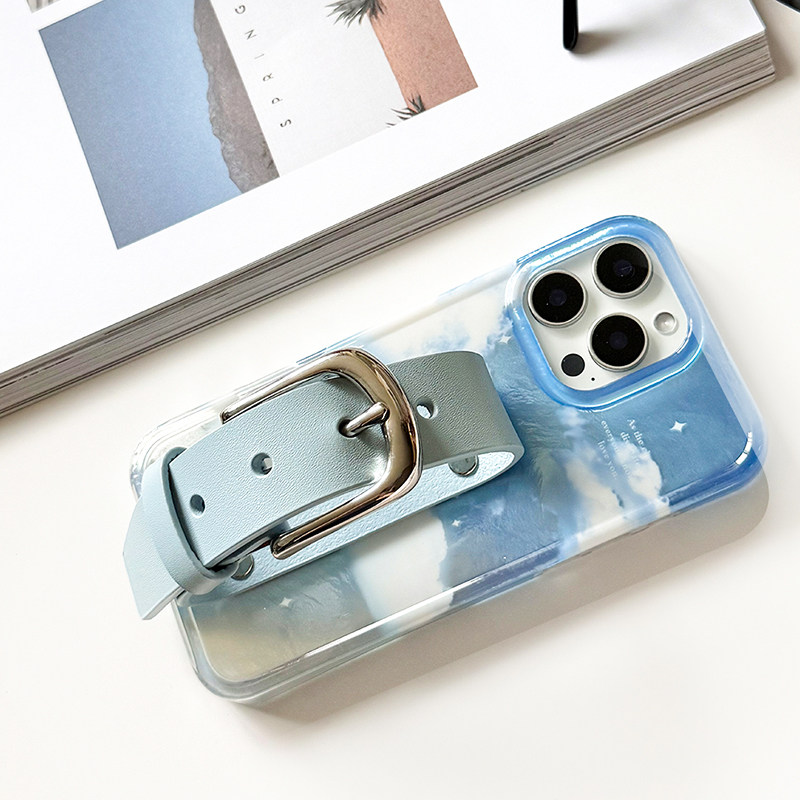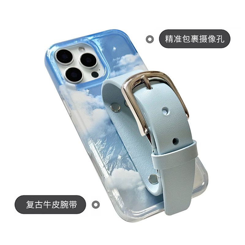 bluesky蓝天云朵植糅牛皮铜扣iphone17Promax经典铜扣腕带手机壳苹果16/15系列原创设计保护套手机保护壳