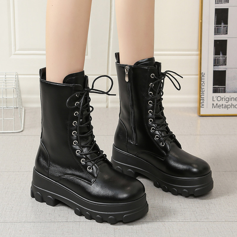 马丁靴cos增高10cm小个子男女鞋厚底中筒漫展大码新款内增高短靴