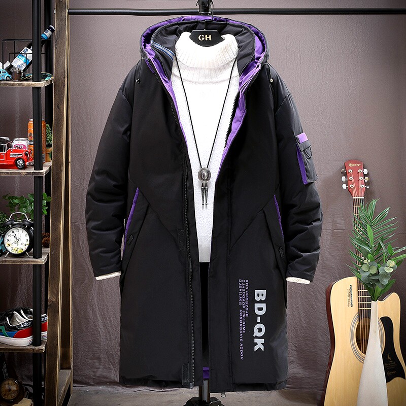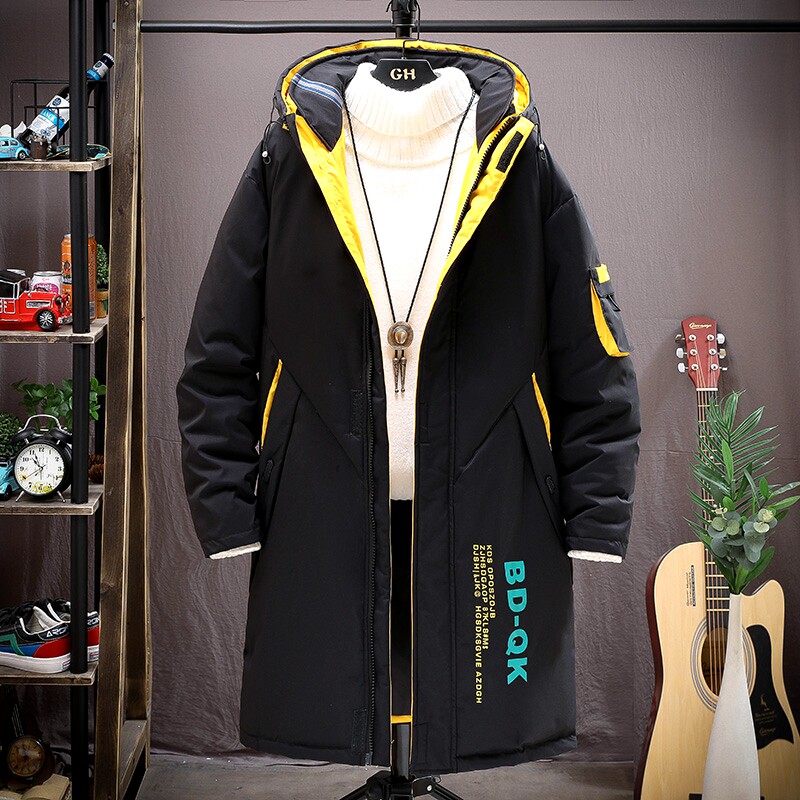 青少年男款羽绒服中长版加厚学生男装帅气棉服潮男士冬季外套反季