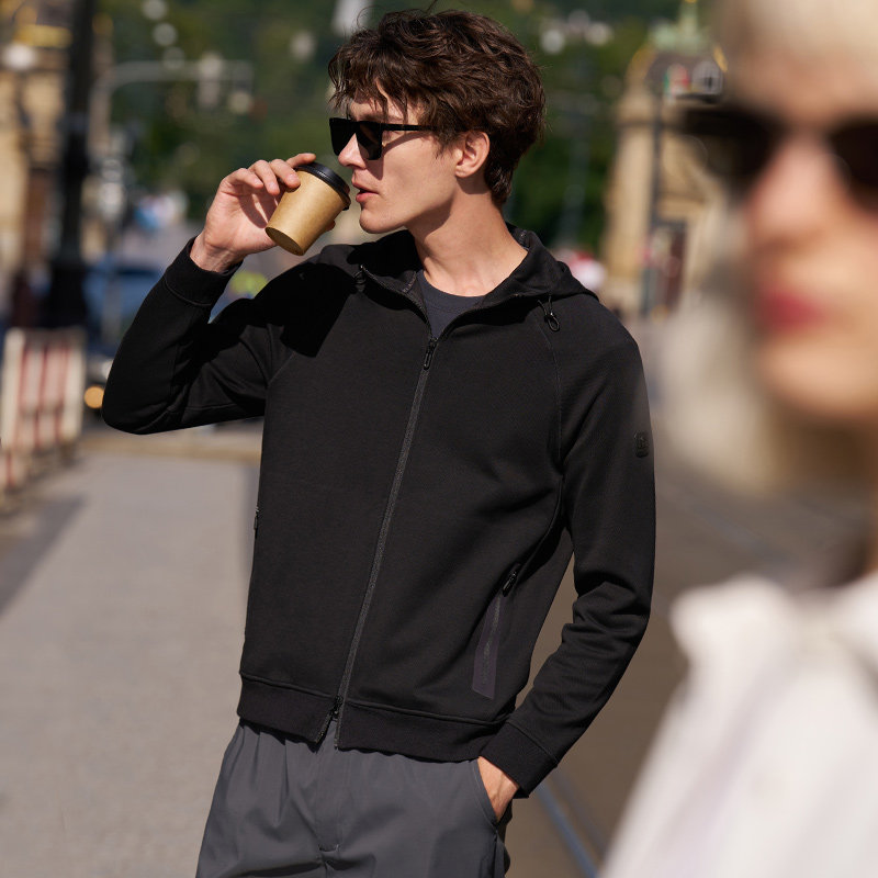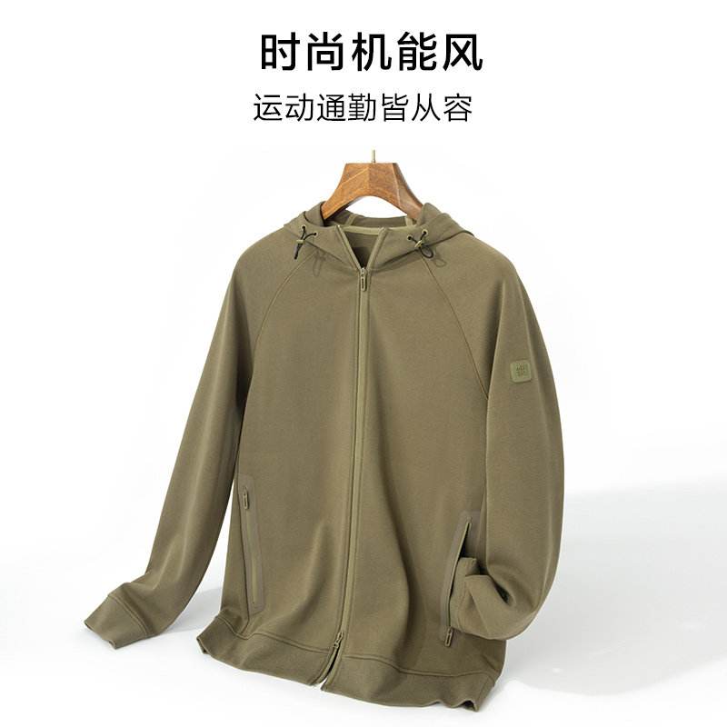 MrBu布先生插肩袖外套男款连帽卫衣机能风长袖上衣双拉链KT16628