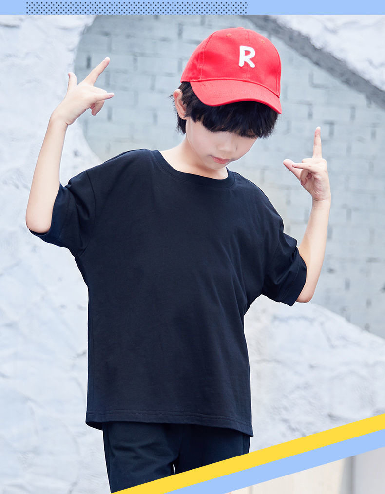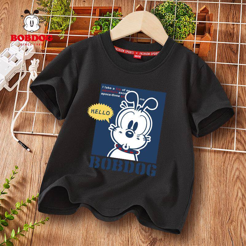 巴布豆男童套装夏季短袖新款纯棉宽松上衣薄款百搭运动风儿童T恤