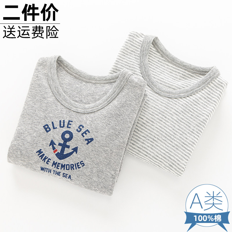 春款儿童男童孩宝宝纯棉薄款a类圆领长袖秋衣T恤衫内衣睡衣打底衫