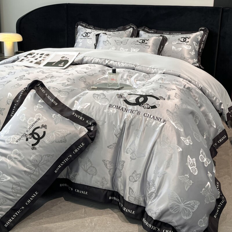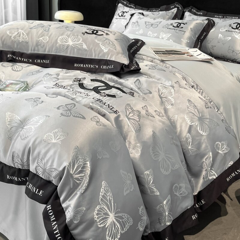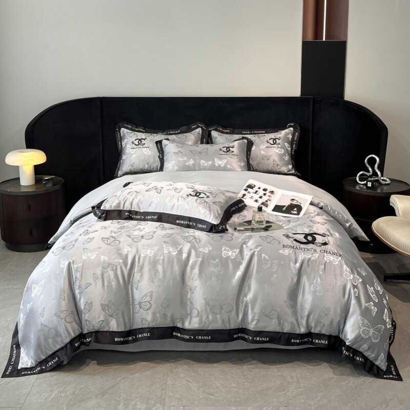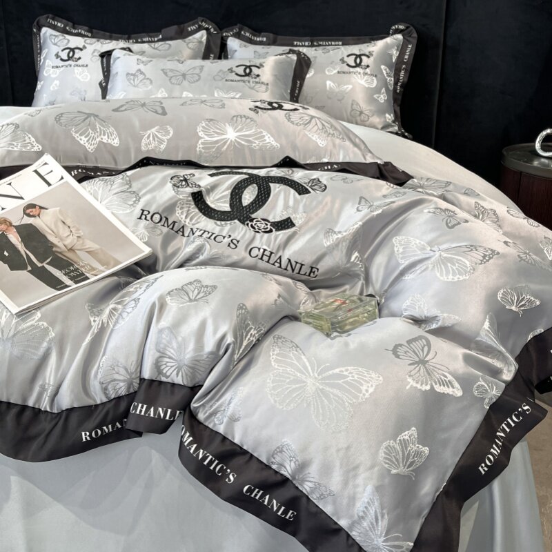 小香风冰丝床上四件套丝滑裸睡被套罩主卧室双面真丝床笠床上用品