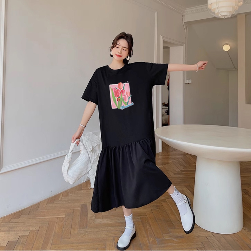 加大码胖mm连衣裙巨显瘦宽松遮肚子裙子夏天短袖洋气2026年新款夏