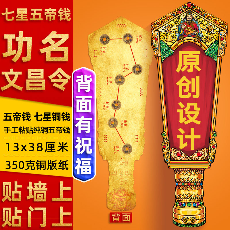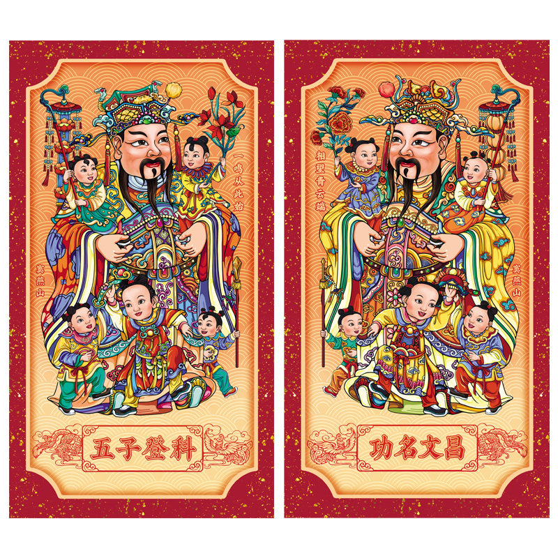 五子登科门神贴纸金榜题名卡片挂件中考高考试仪式感黄金片礼物盒