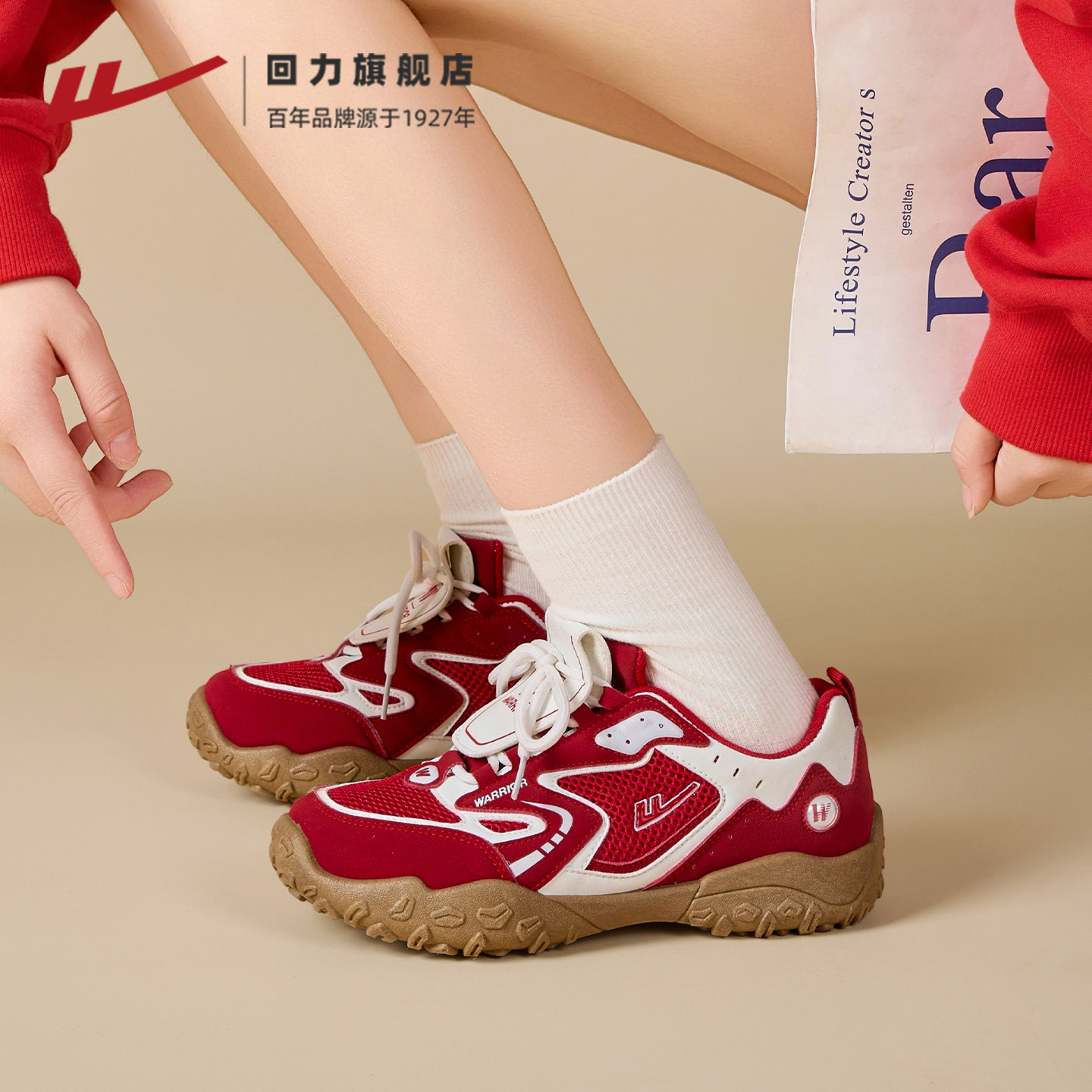 回力德训鞋女2026春季新款红色女鞋网面透气运动鞋复古休闲板鞋子