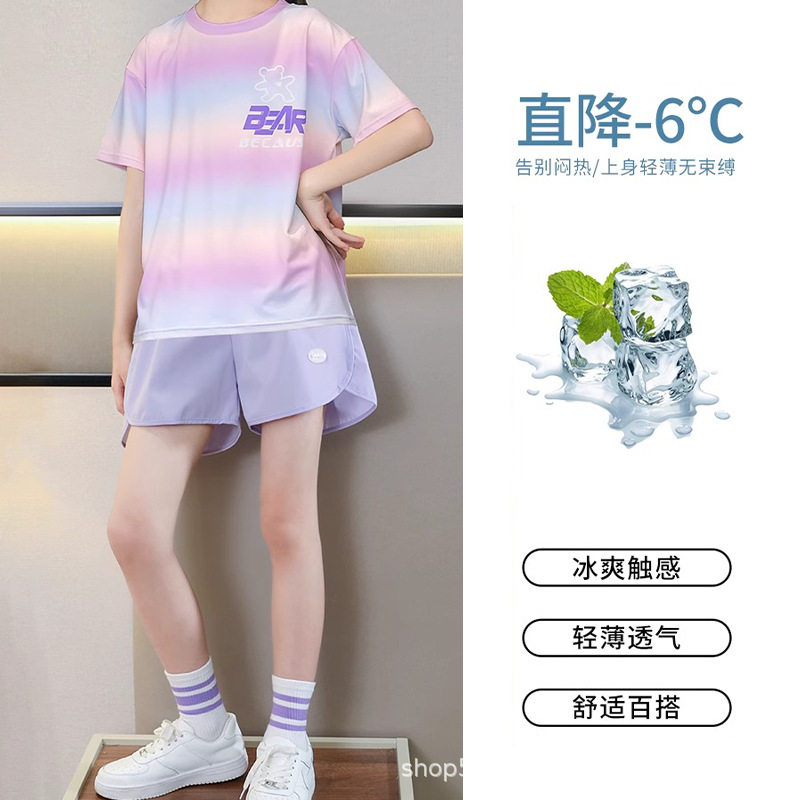 女童夏季运动短裤夏装冰丝儿童速干套装夏天女孩两件套中大童短袖