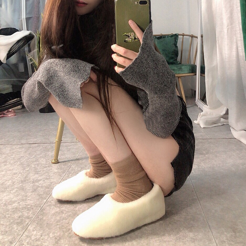 2026秋冬季白色毛毛鞋女外穿网红温柔风单鞋一脚蹬内增高加绒豆豆