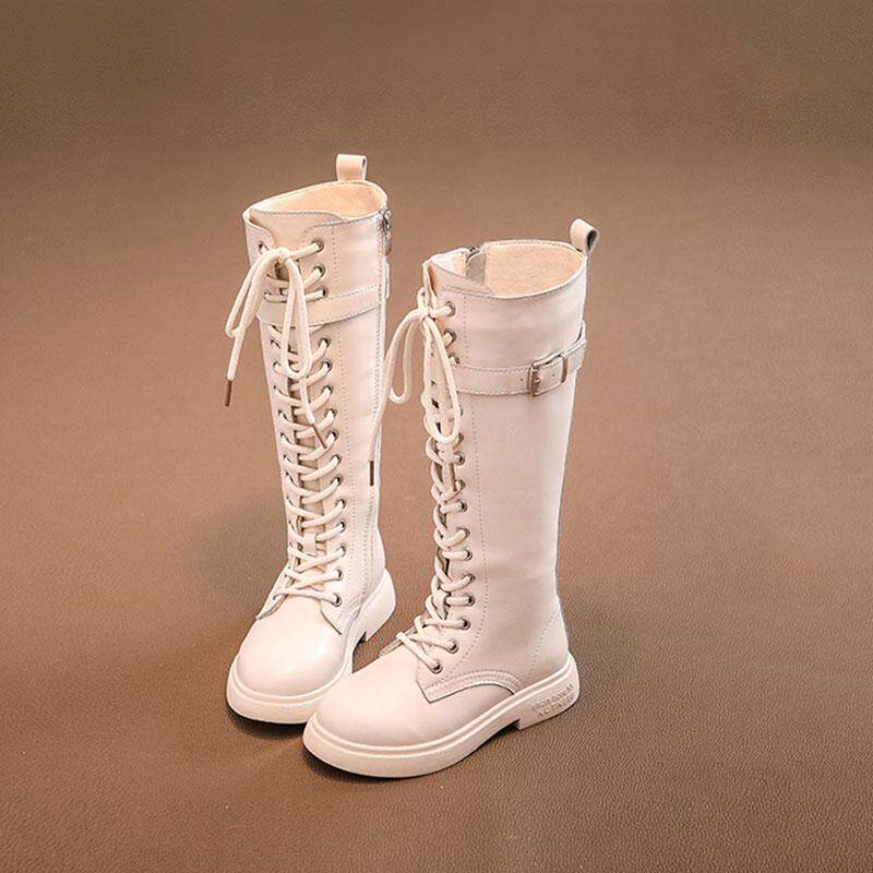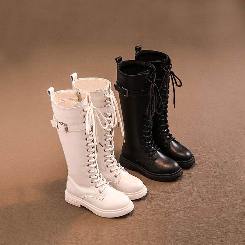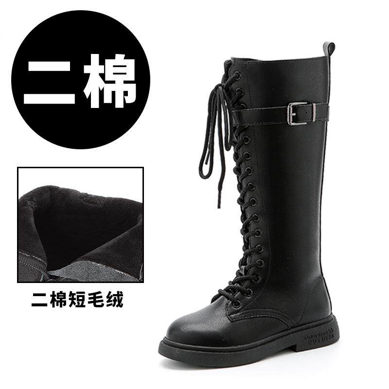 长筒靴子女童鞋加绒皮靴秋冬新款英伦高筒棉靴软底时尚儿童马丁靴