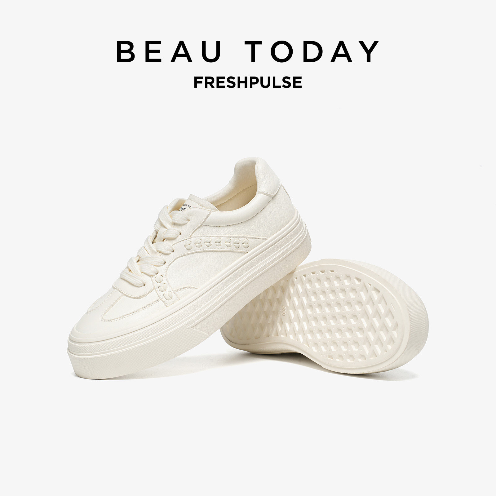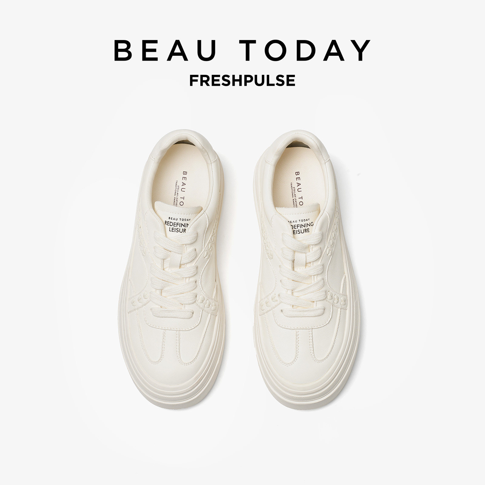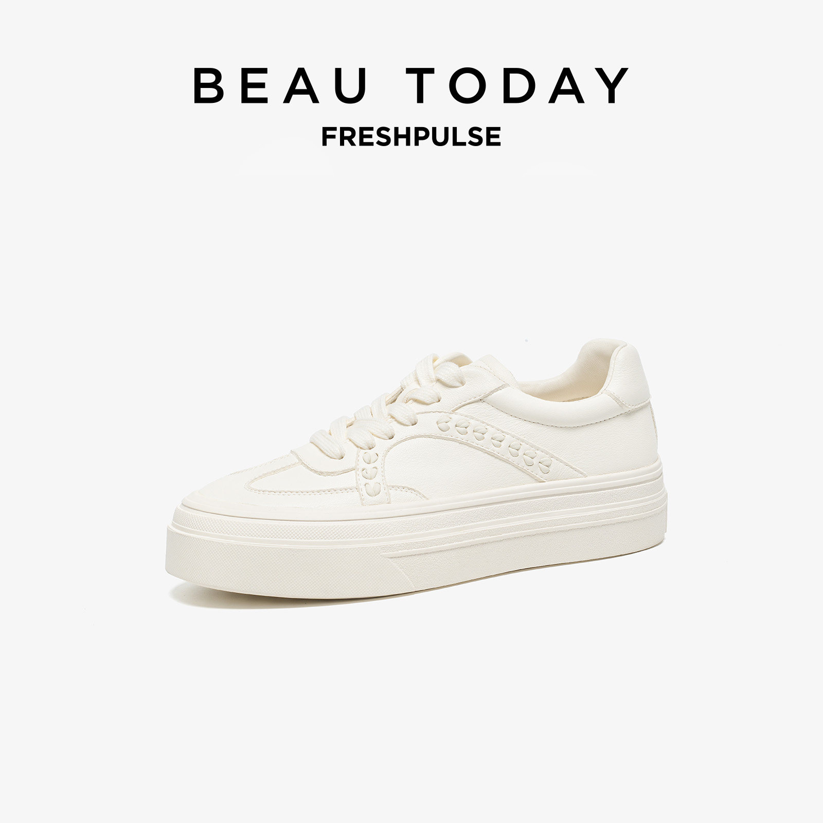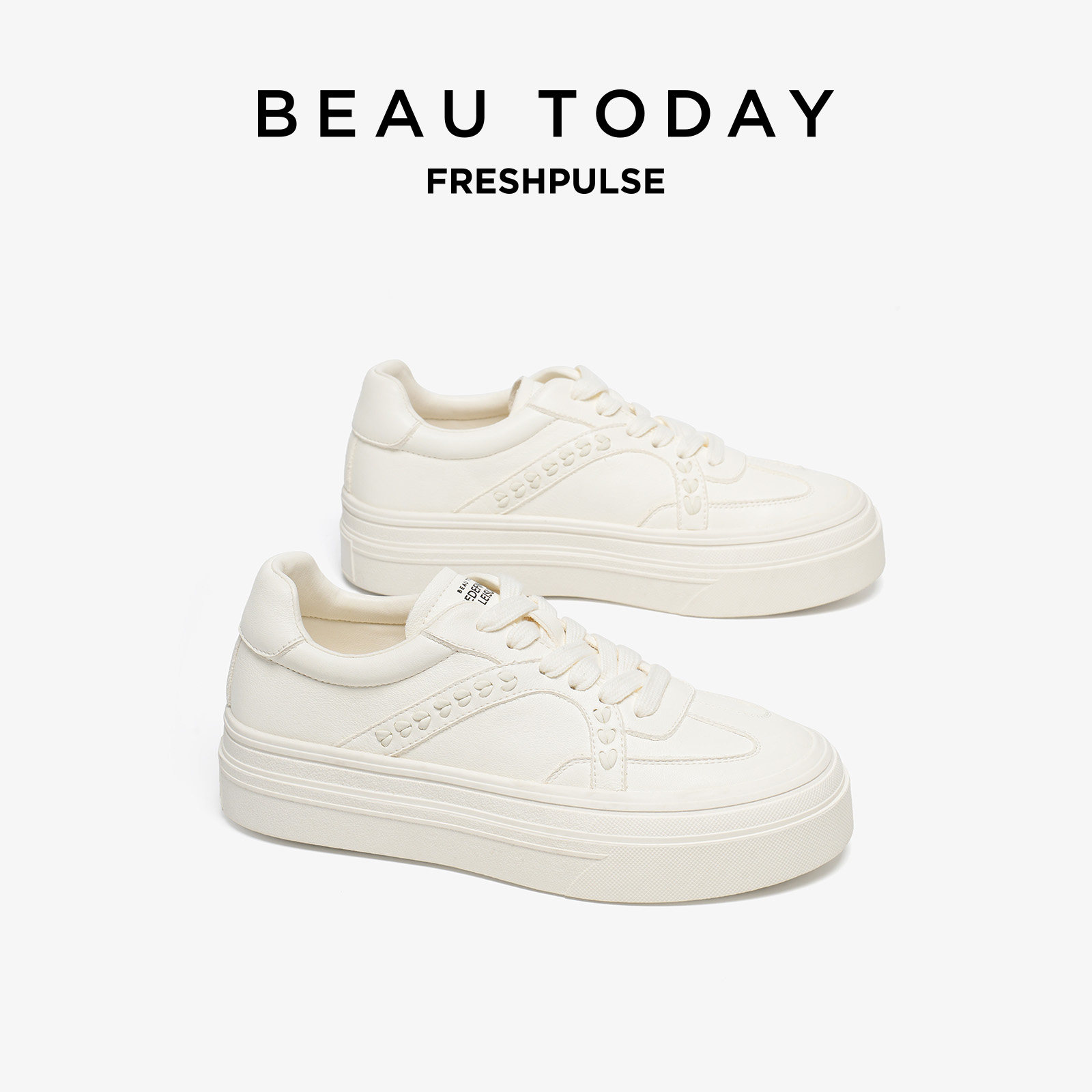 BeauToday厚底真皮小白鞋女款2026新款春季全头层牛皮增高休闲鞋