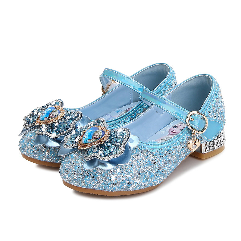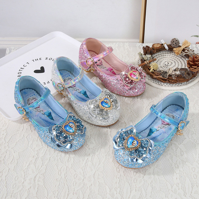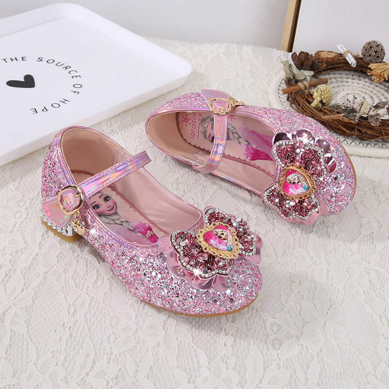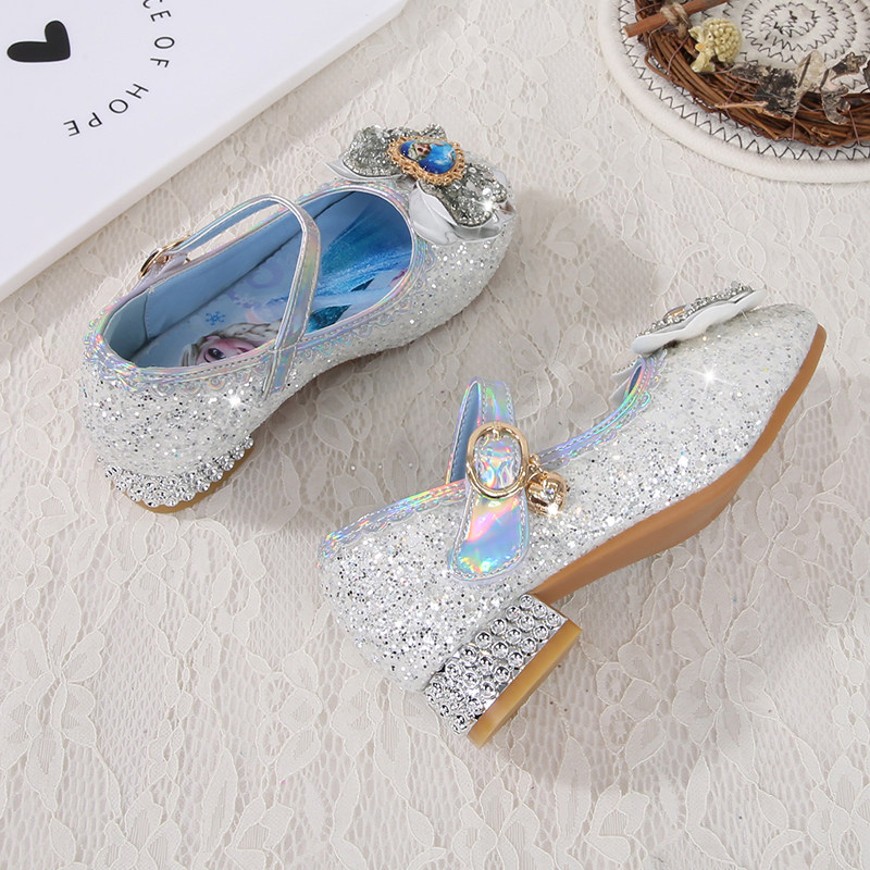 女童公主鞋2026新款爱莎水晶软底宝宝女孩小皮鞋艾莎高跟儿童鞋子