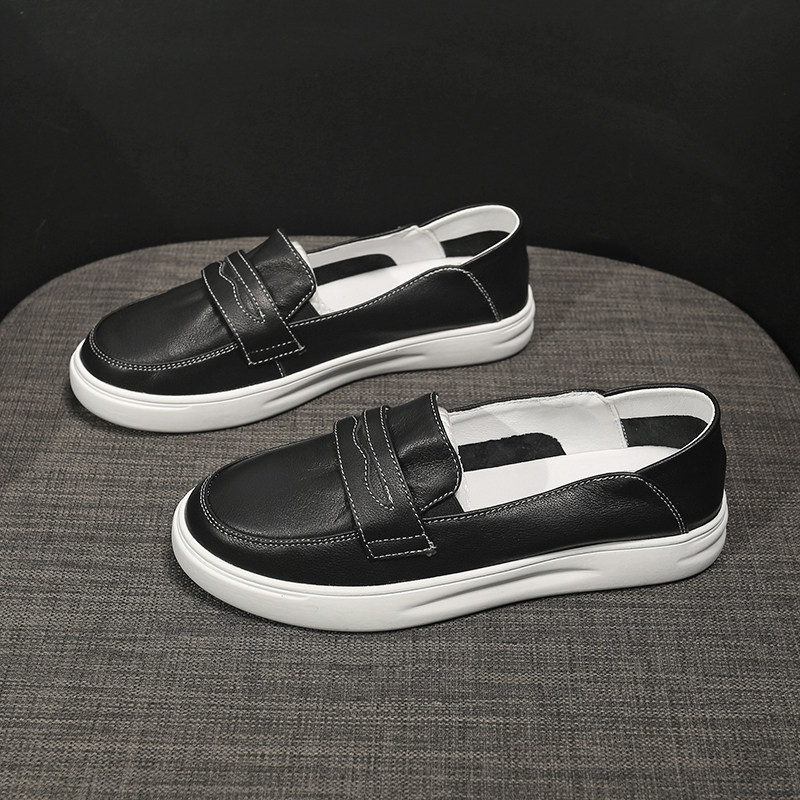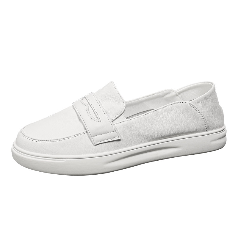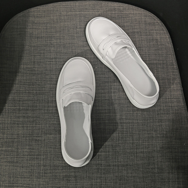 头层牛皮浅口一脚蹬乐福鞋女鞋2026新款软底休闲鞋平底豆豆小白鞋
