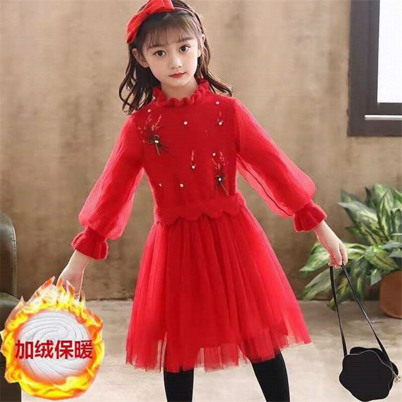 女童连衣裙冬装2026网纱裙毛衣中大童春秋裙子秋冬新款儿童公主裙