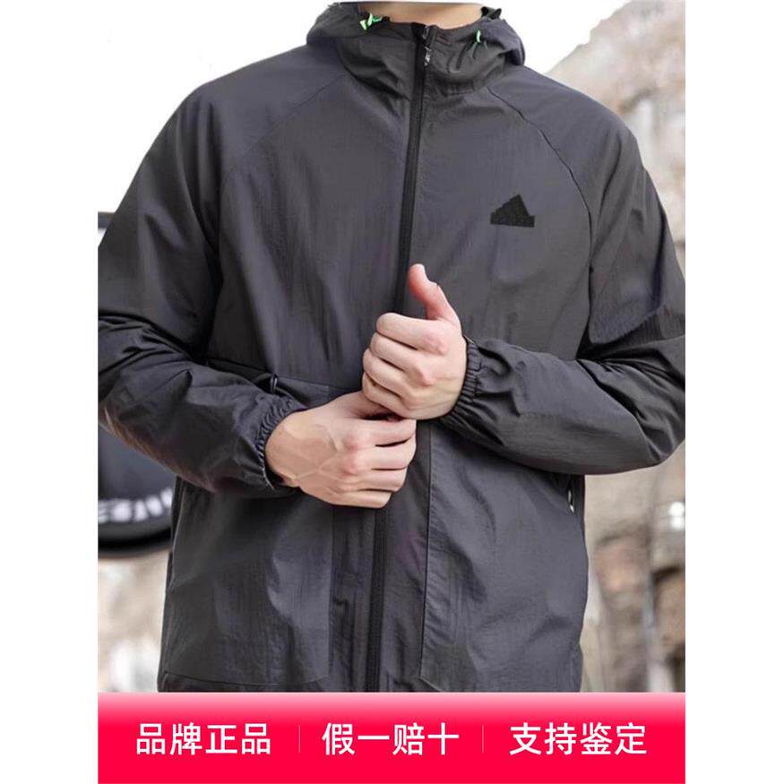 阿迪达斯外套男春季薄款防晒衣梭织防风夹克休闲运动皮肤衣JI8658
