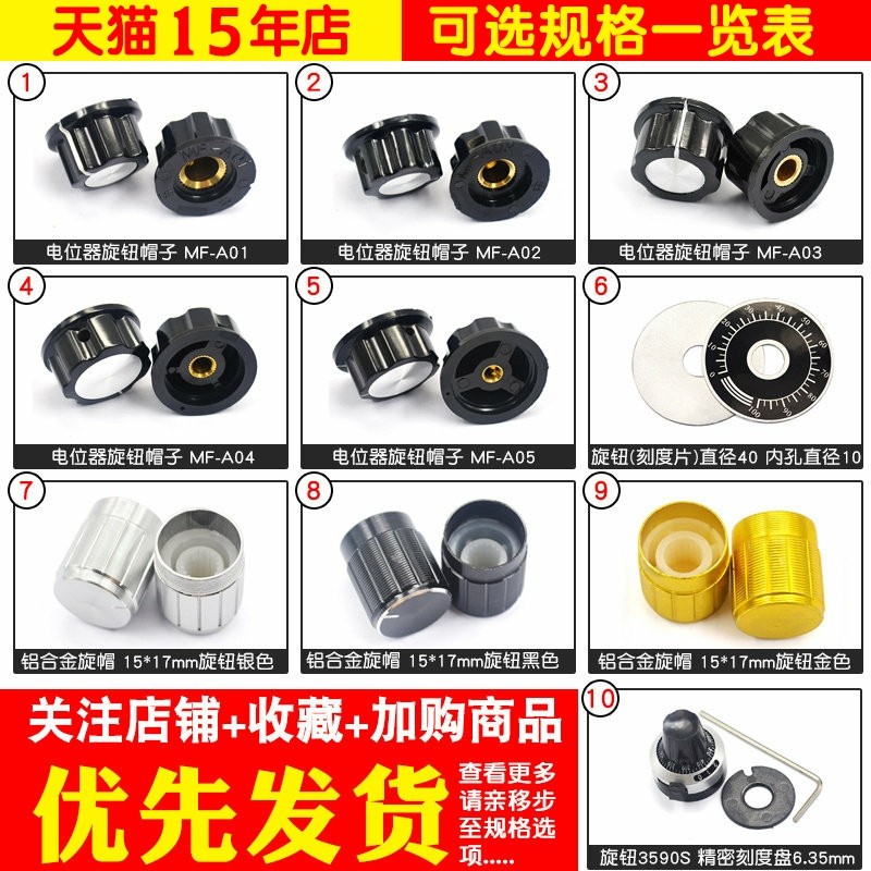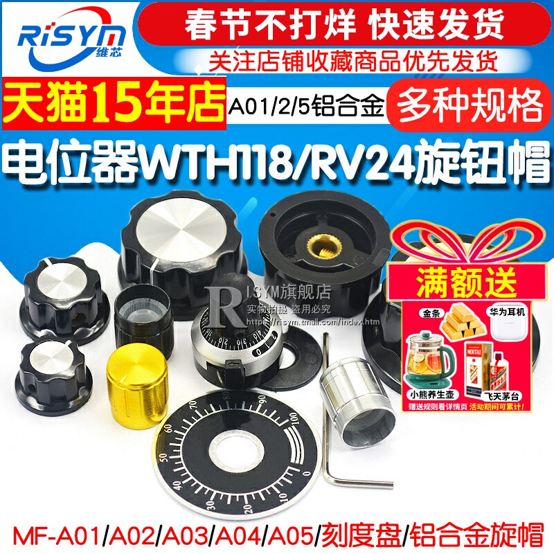 MF-A01 A02 电位器WTH118/RV24旋钮帽子胶木旋钮旋转刻度铝合金计