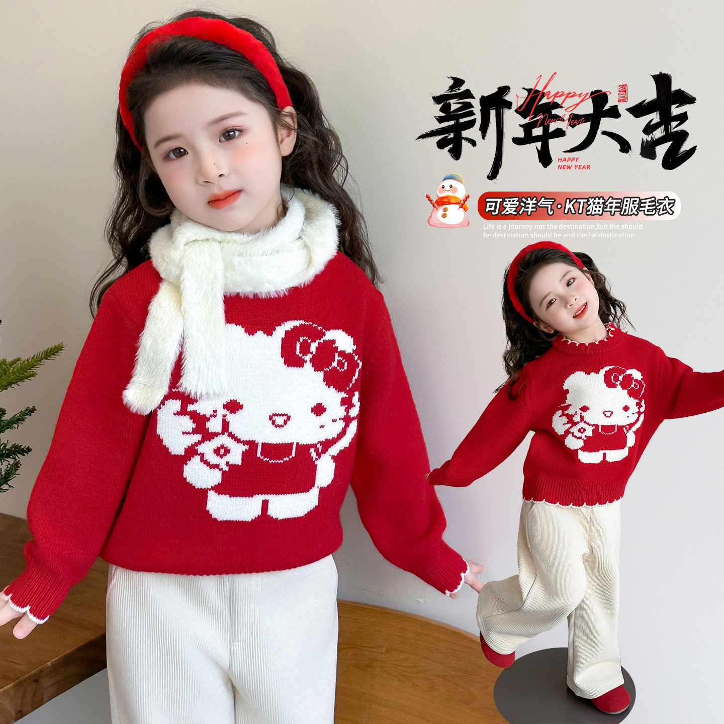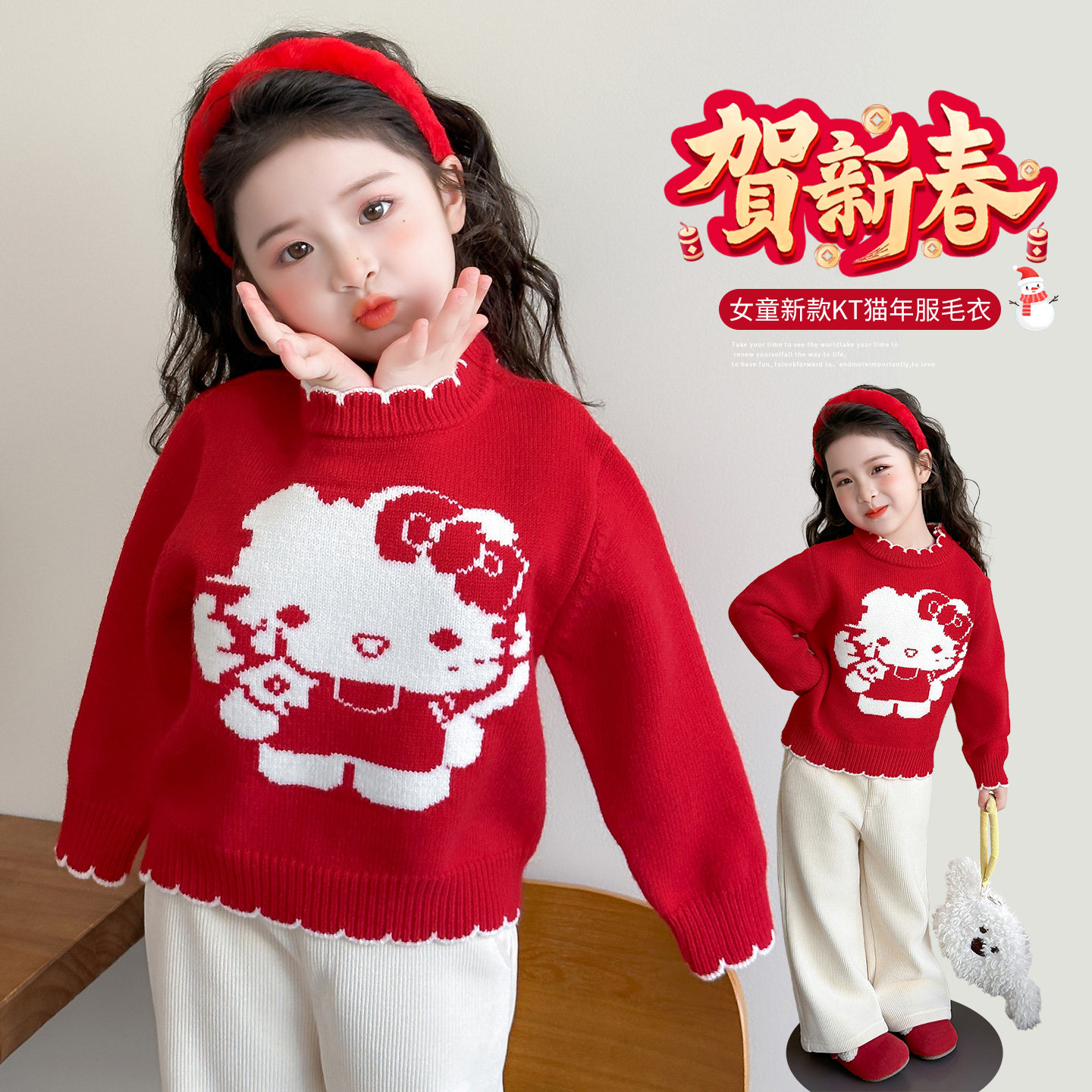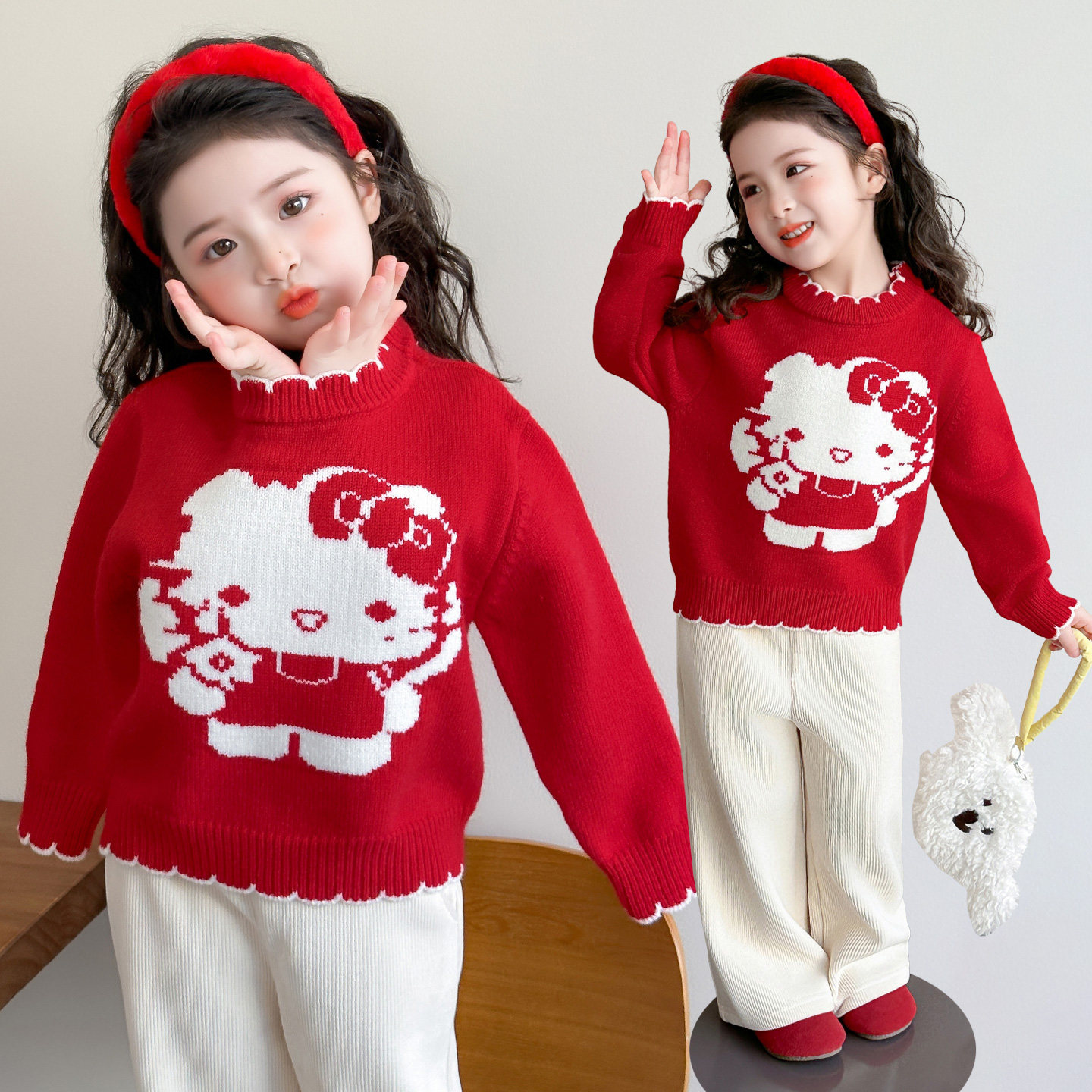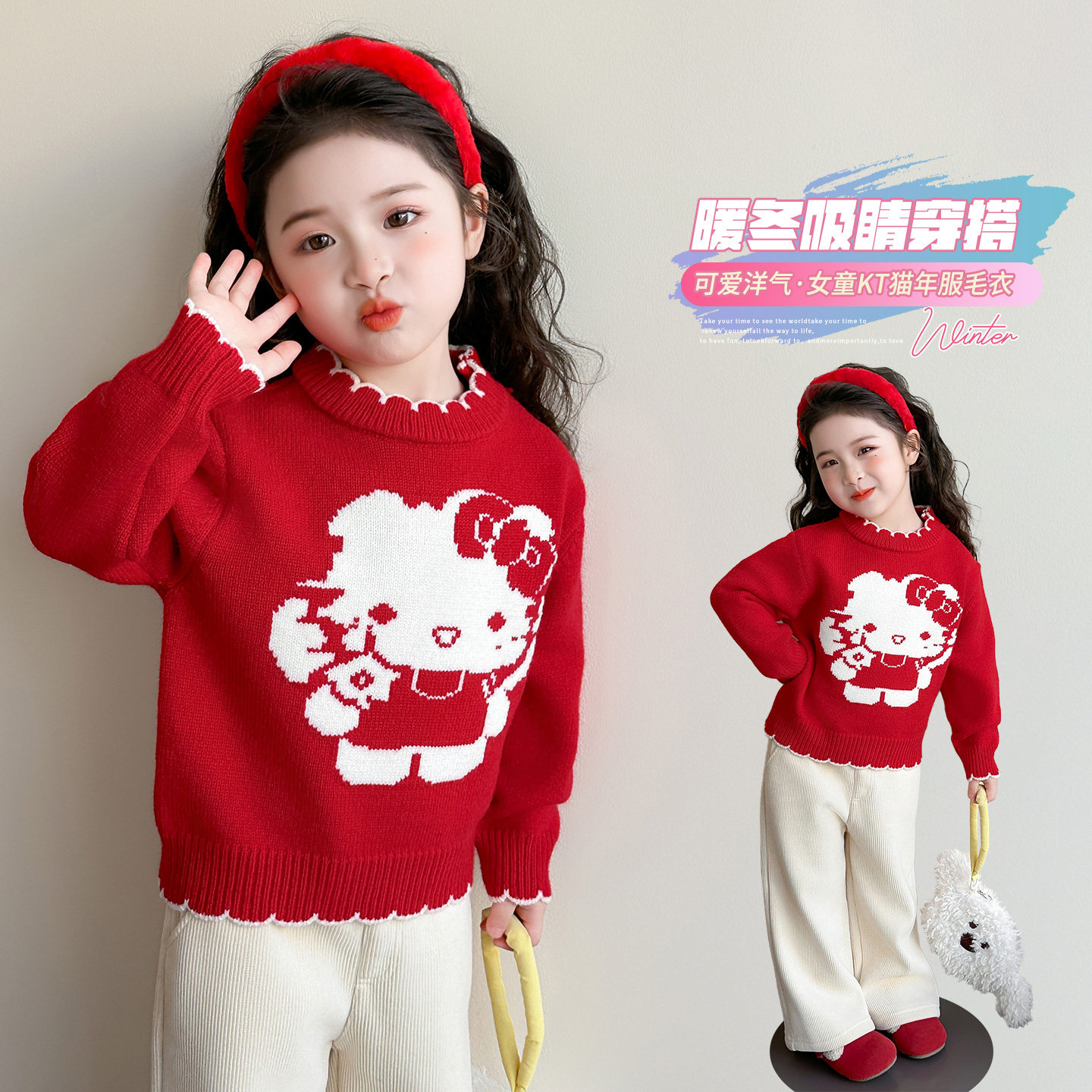 女童毛衣2025冬装新款女宝加厚宝宝冬季女款毛线衣红色儿童内搭