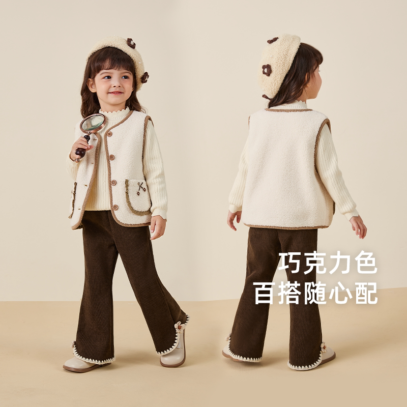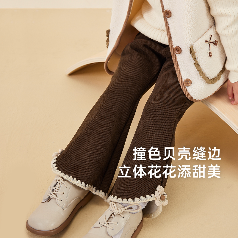 女童喇叭裤秋冬小童微喇冬季薄绒儿童咖色休闲裤时髦宽松宝宝裤子