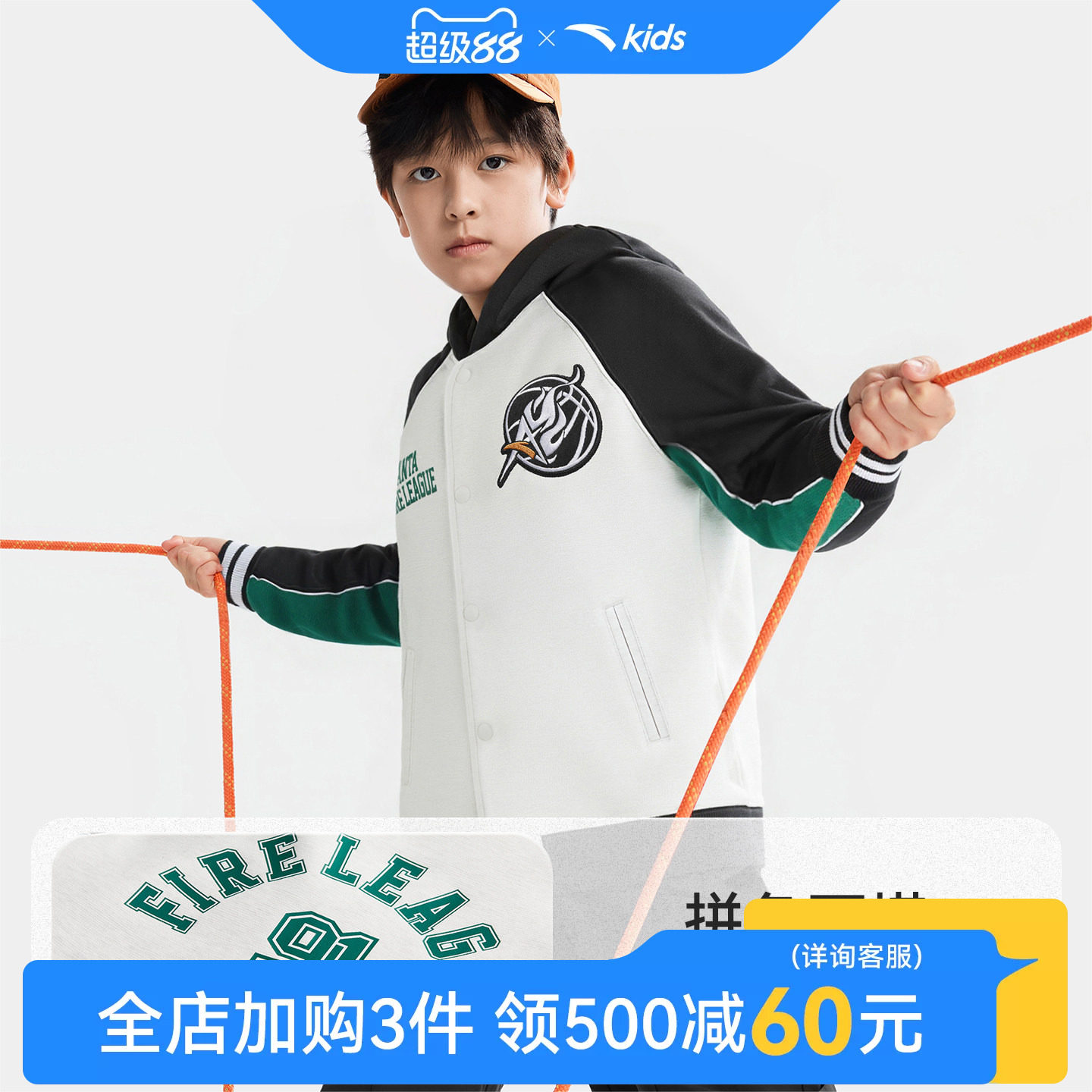 星火篮球系列安踏儿童外套男童针织连帽运动上衣2026年新款连帽服