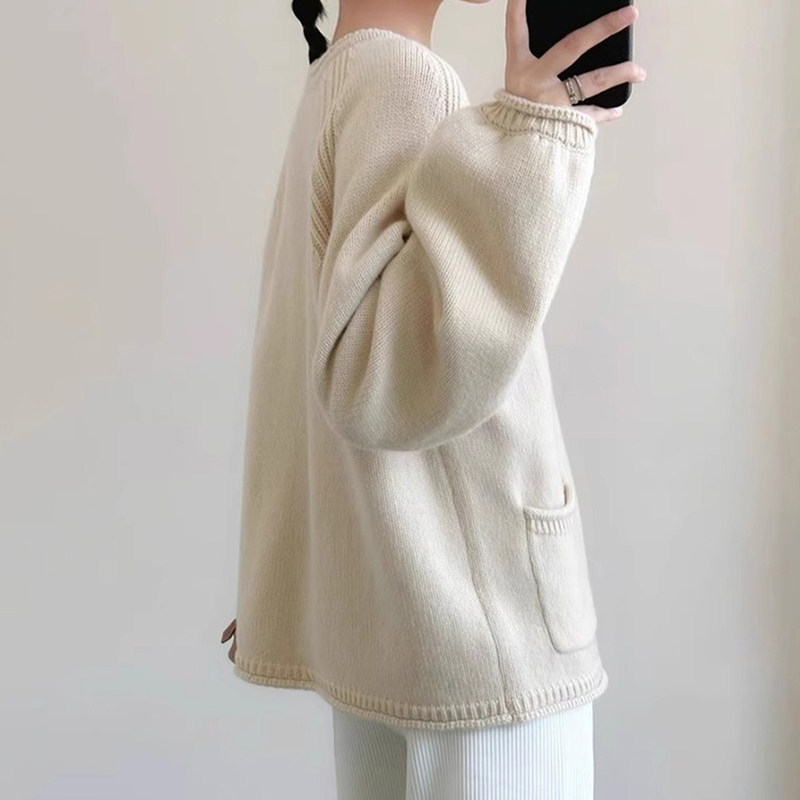 311线报网描述:法式复古毛衣外套慵懒宽松加厚针织开衫上衣