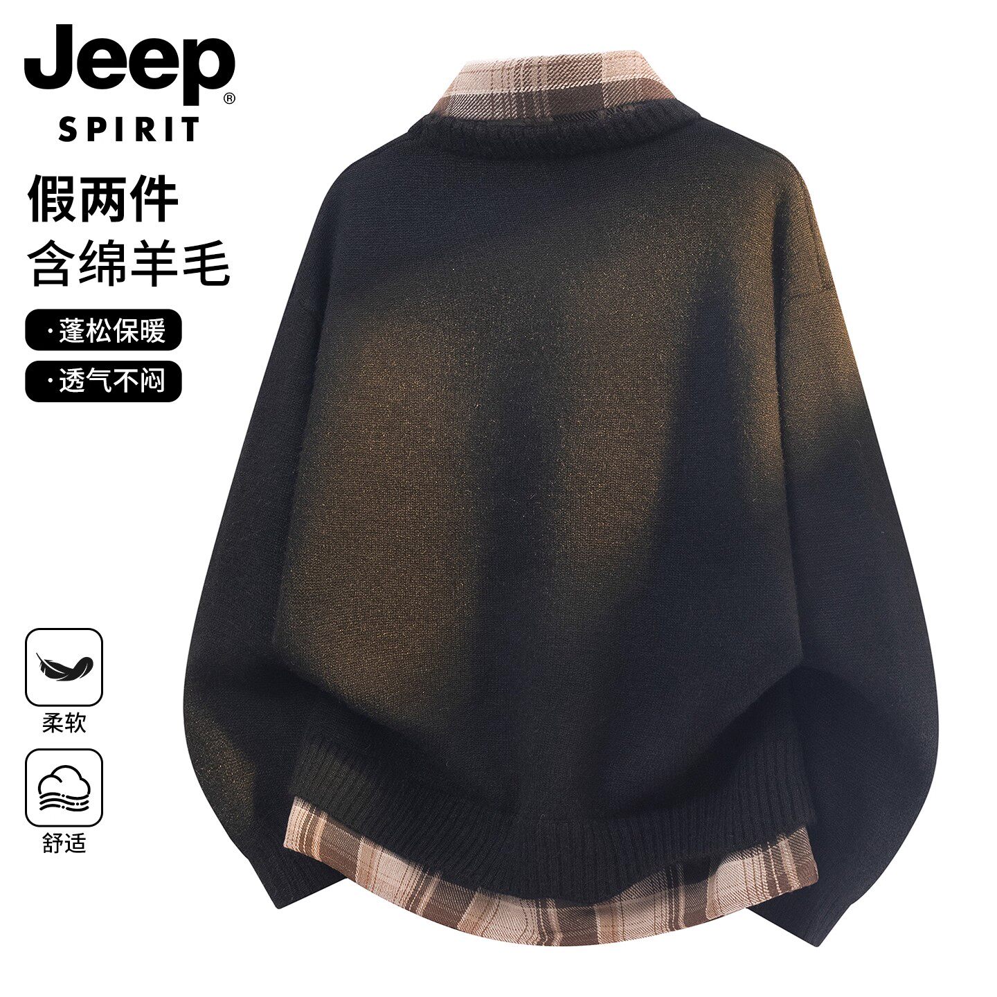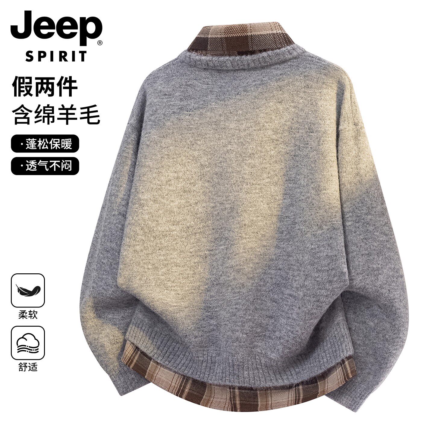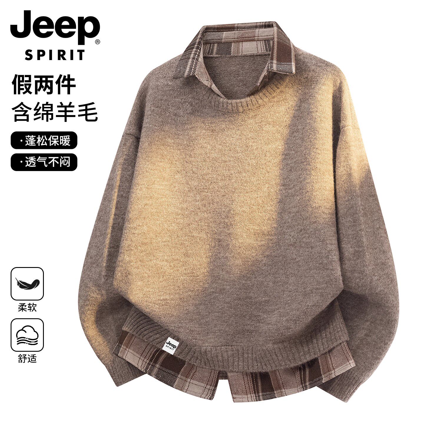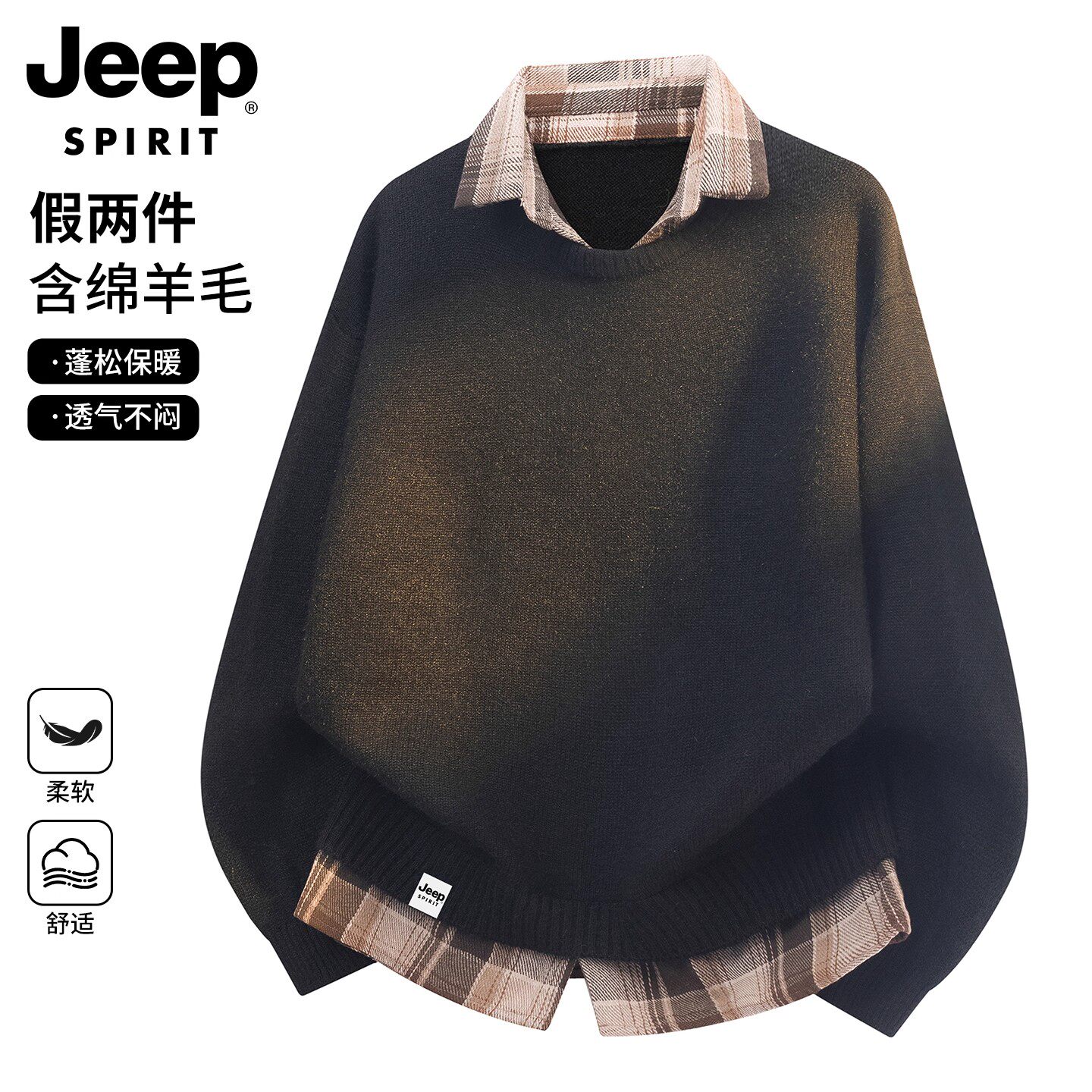 JEEP SPIRIT假两件针织衫男女冬季新款青少年毛衣男士羊毛衫上衣