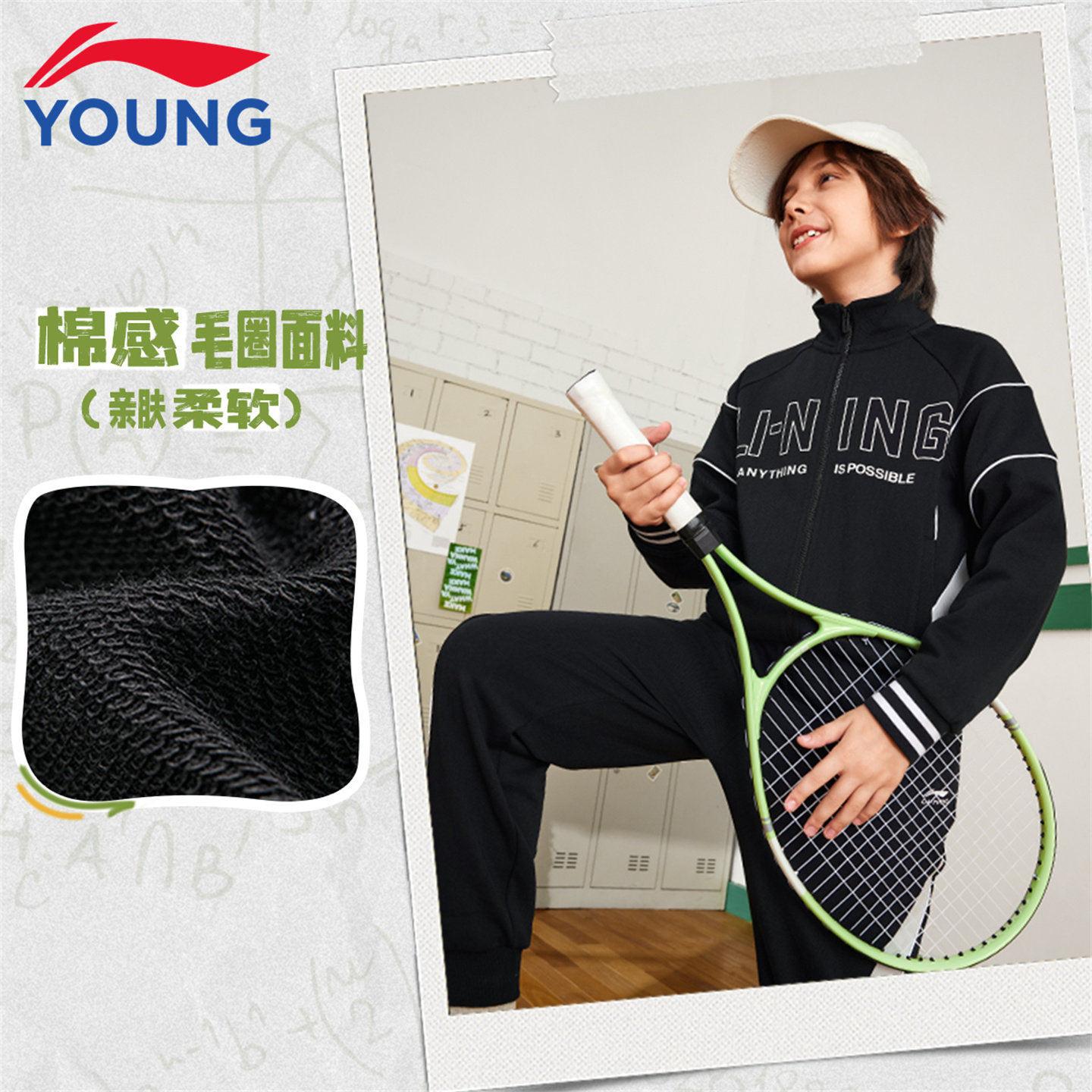 李宁童装儿童运动套装男童外套2026春季新款青少年卫衣卫裤两件套