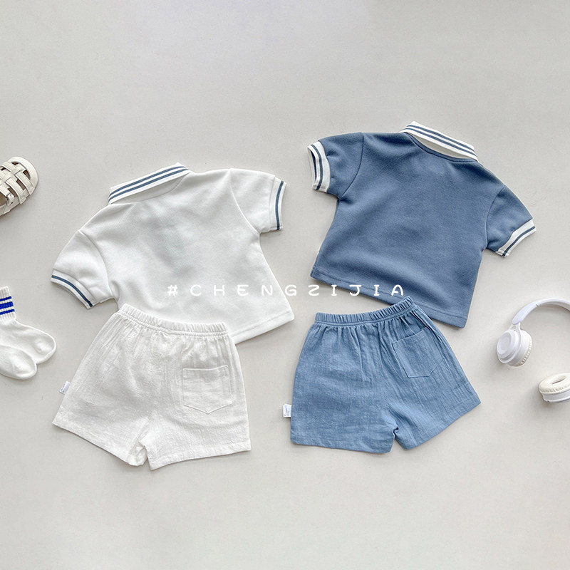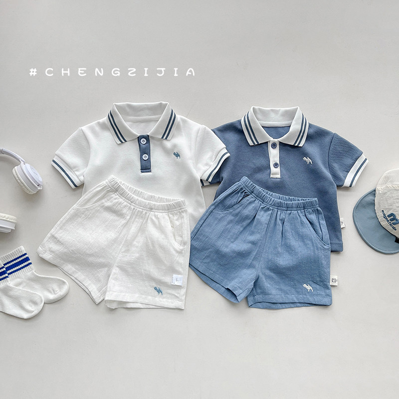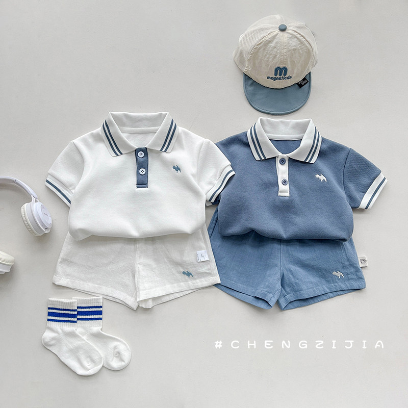 童装男童短裤新款婴儿夏季薄款外穿中裤宝宝短袖帅气polo衫套装潮