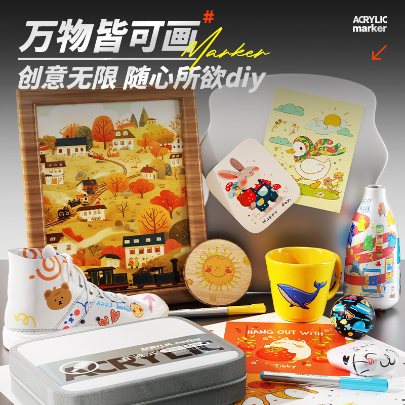 晨光直液式软头丙烯马克笔学生专用不透色可叠色儿童小学生美术专用幼儿园水彩笔36色48笔芯礼盒套装水性彩笔