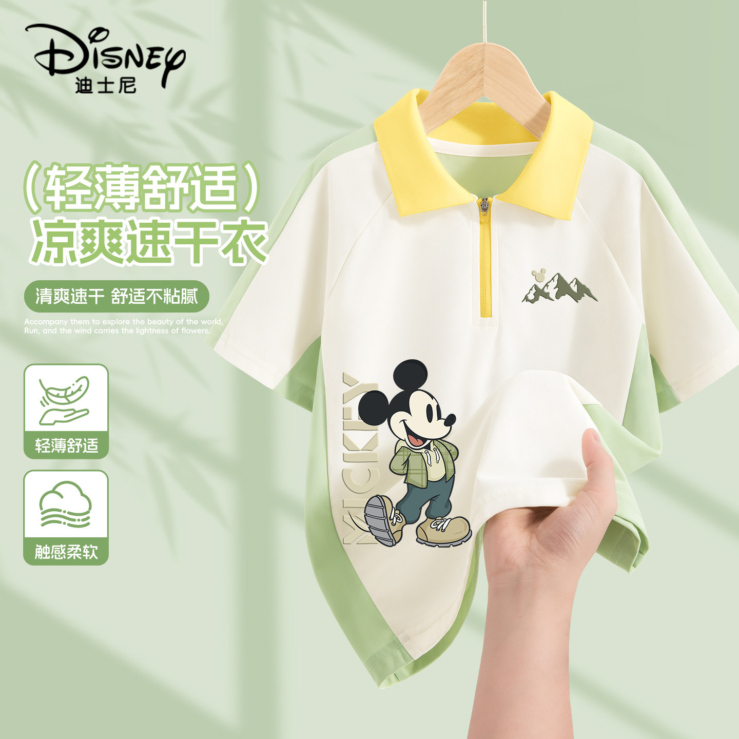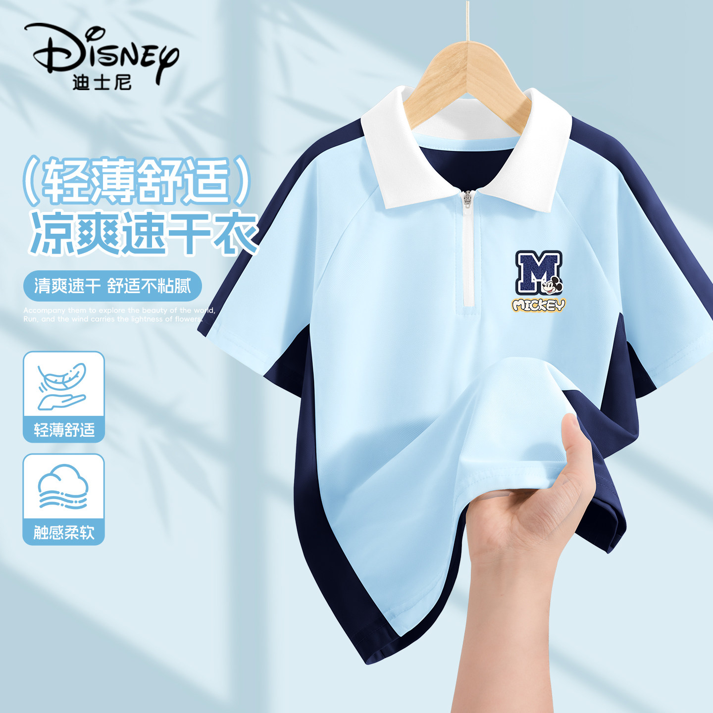 迪士尼男童速干polo衫2026新款童装男孩半袖吸湿儿童夏装短袖t恤