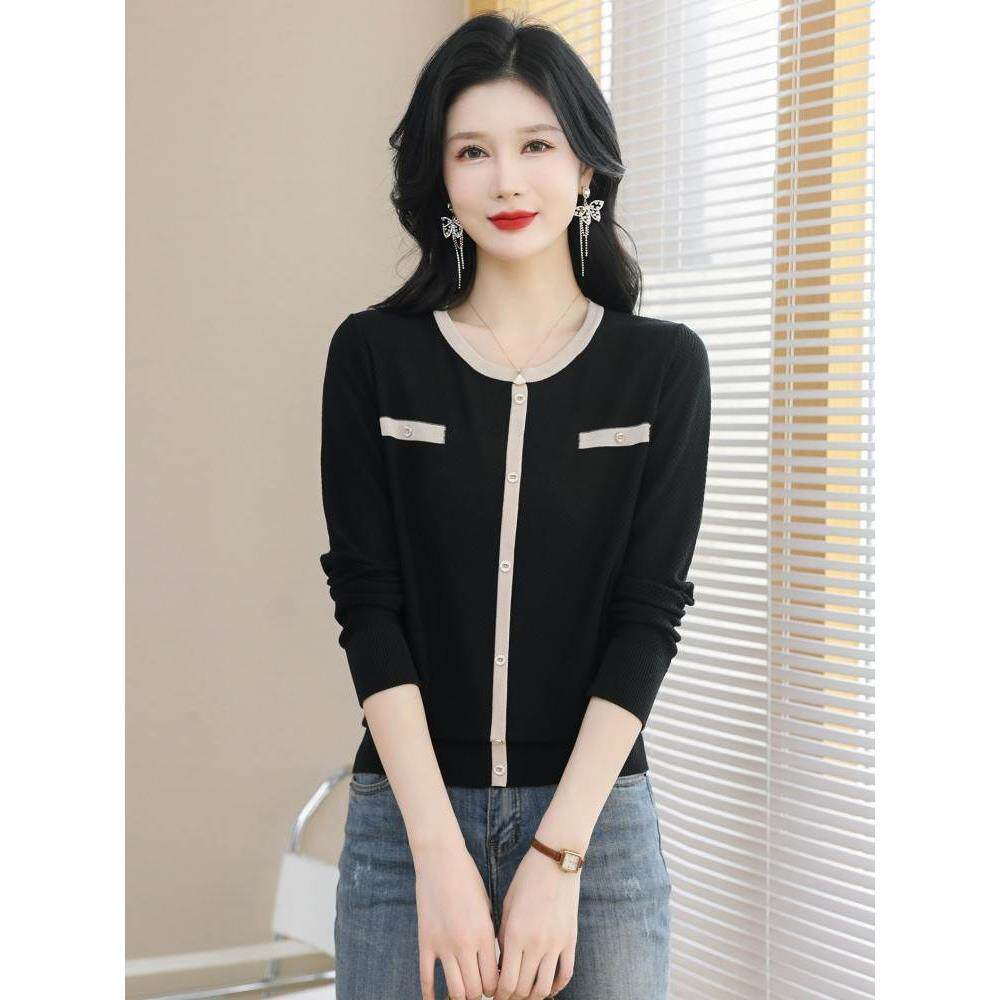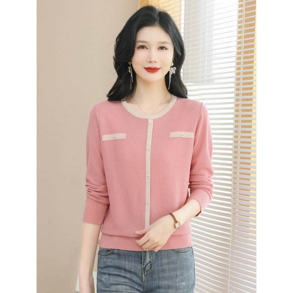 圆领薄款针织衫女款2025新款小香风毛衣宽松外穿莱赛尔冰丝打底衫