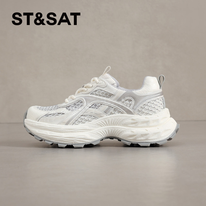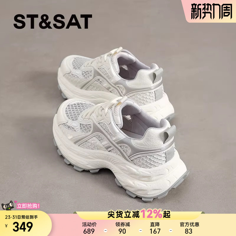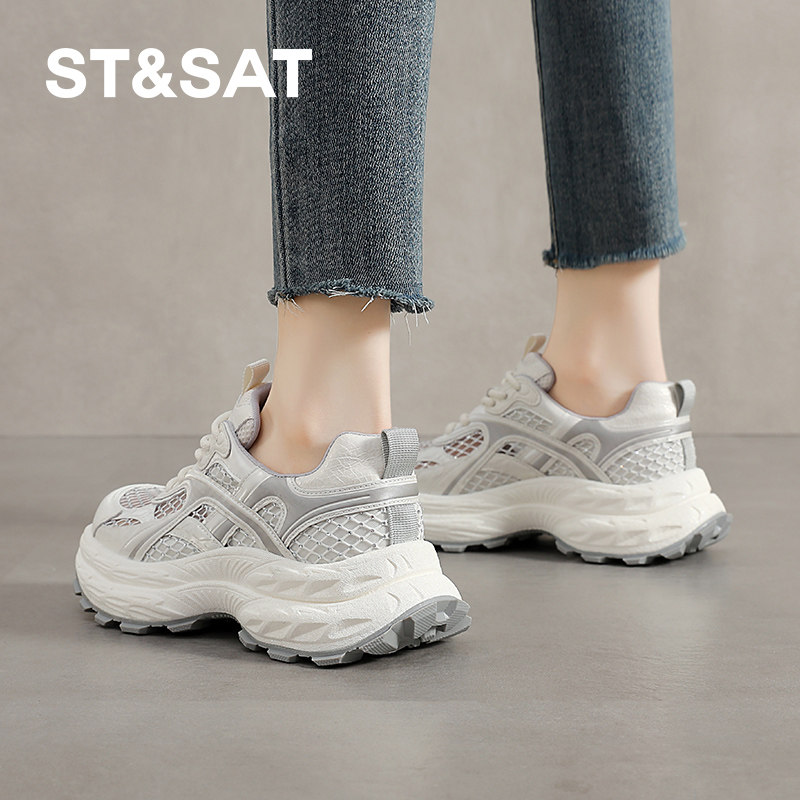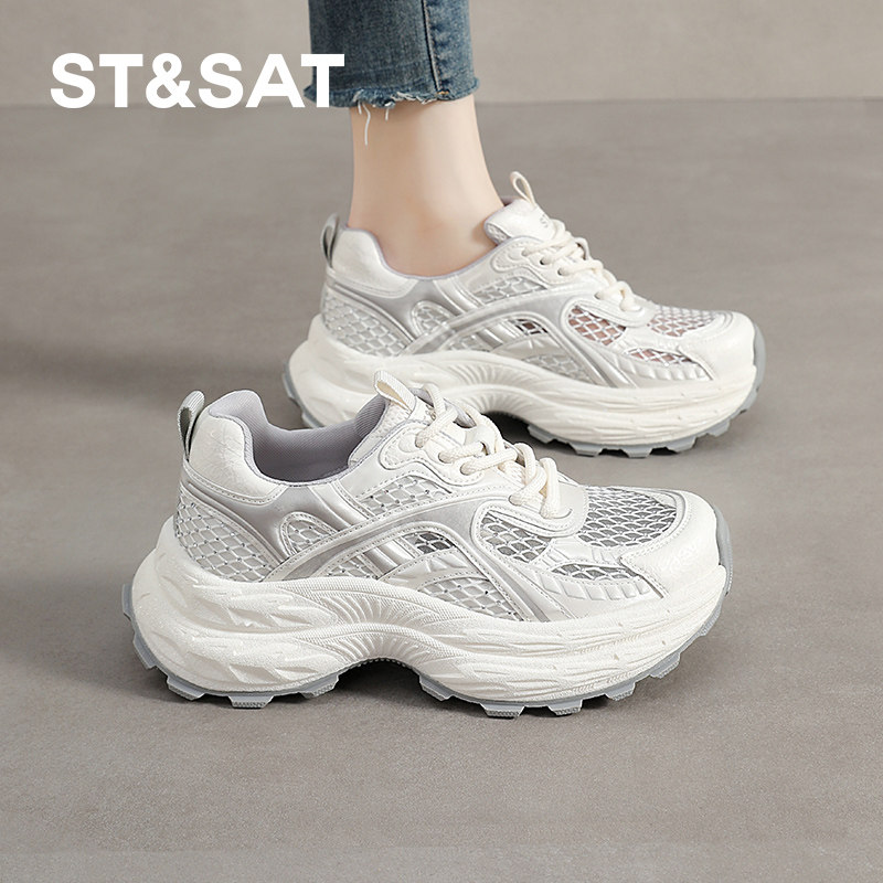 星期六白色网面老爹鞋女款夏季透气网鞋不闷脚运动休闲鞋厚底增高